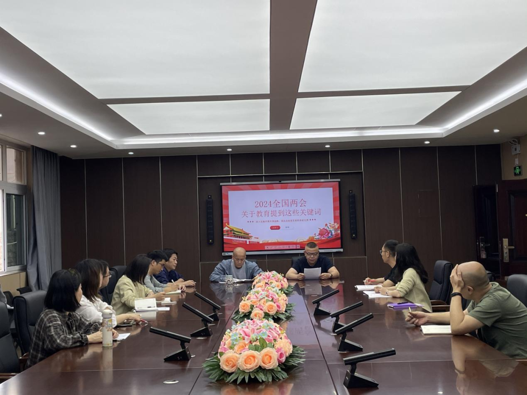 为认真传达学习2024年十四届全国人大二次会议和全国政协十四届二次会议(以下简称“全国两会”)精神,3月25日,校党总支陈琛书记利用理论学习中心组学习的机会给党员教师们上了一堂以“2024全国两会关于教育提到的关键词”为重点的微党课。