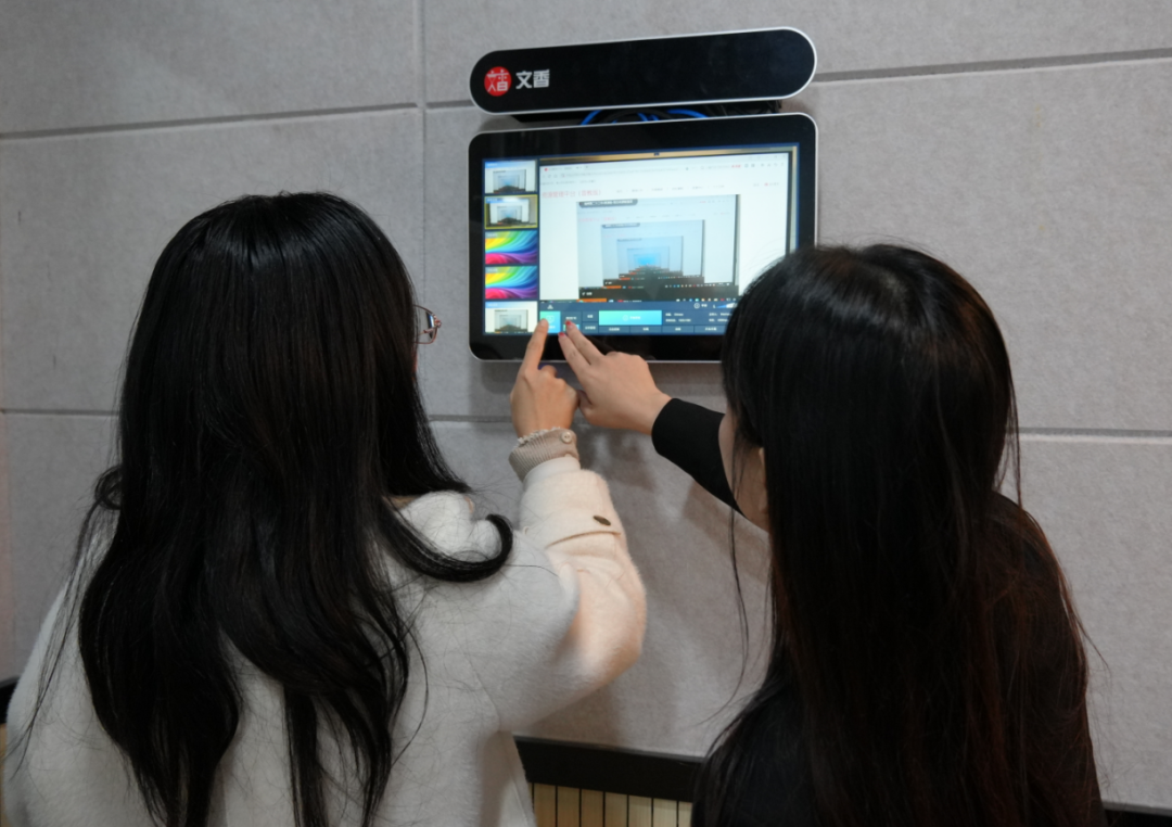 本次微课培训的第一个环节为分组实操体验,学校教师分为四个小组,不同时段进入微课教室体验微课录制效果,并在讲师的指导下进行实操。文香科技两位讲师为教师演示微课制作的具体步骤,介绍多种微课录制的方式及技巧,重点讲解微课录播系统的正确使用方法。老师们在讲师的指导下,体验使用新的微课录播系统进行录制微课。该环节让老师们以最快的速度掌握微课录制技术,并真切地体验如何制作精美的微课作品。