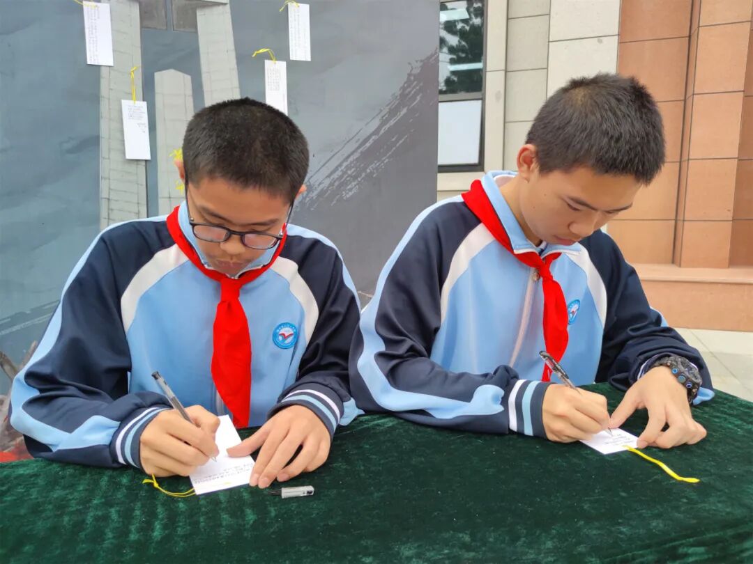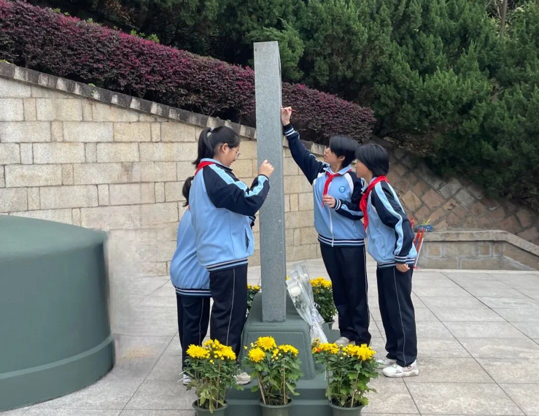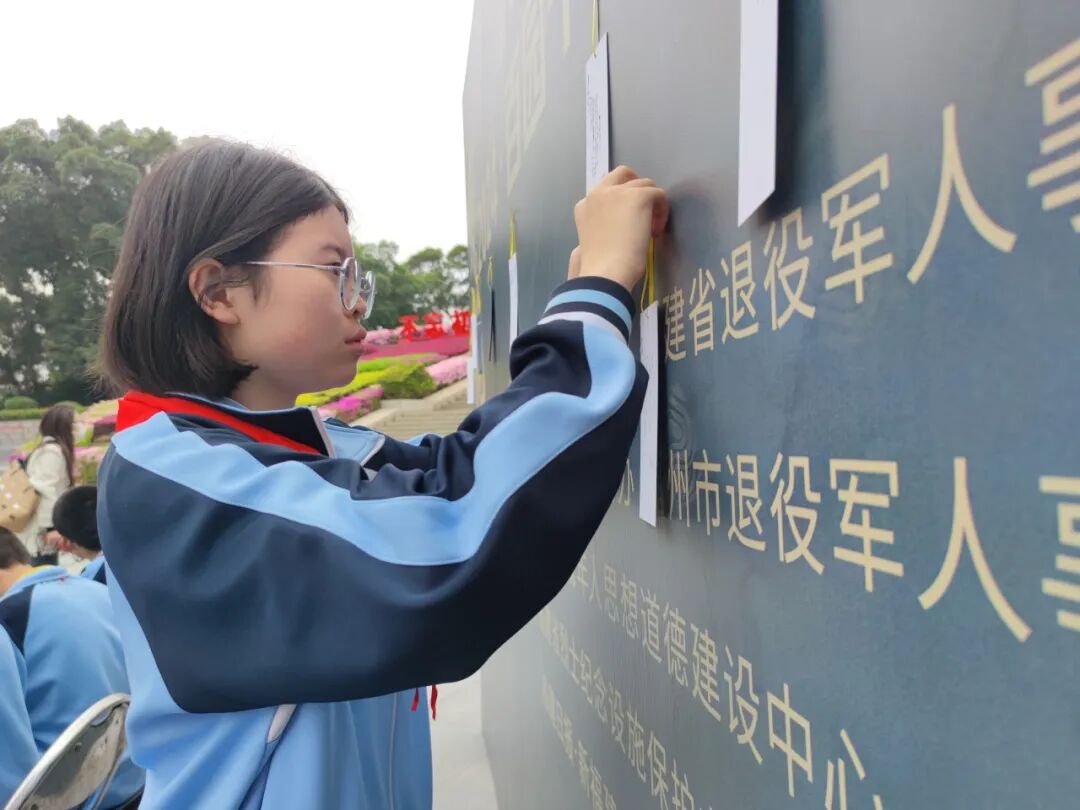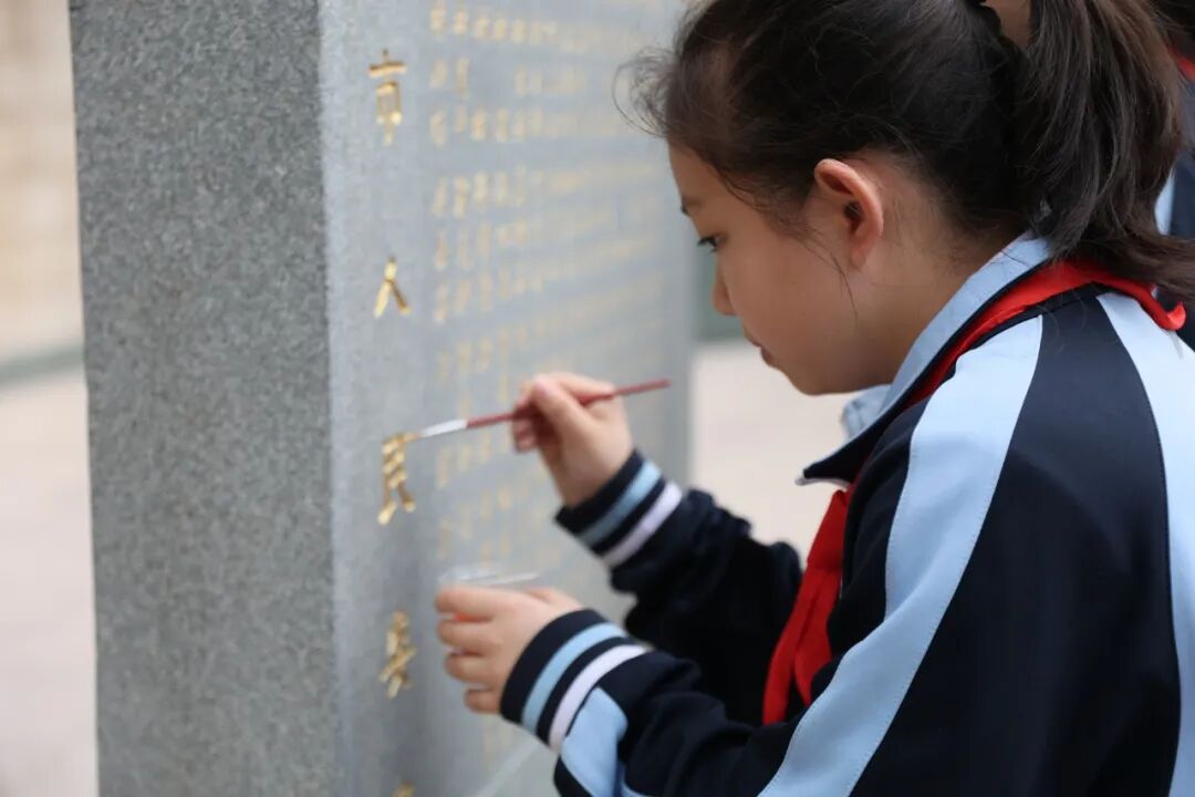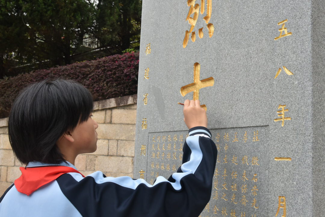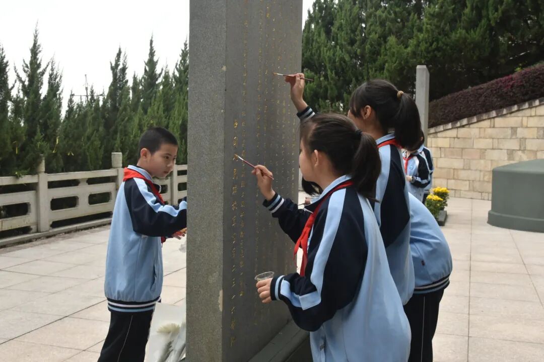 随后,学生依次参加了“倾听一段红色故事、书写一张寄语卡片、举行一场缅怀仪式、开展一次志愿活动、进行一次描金描红”等活动。