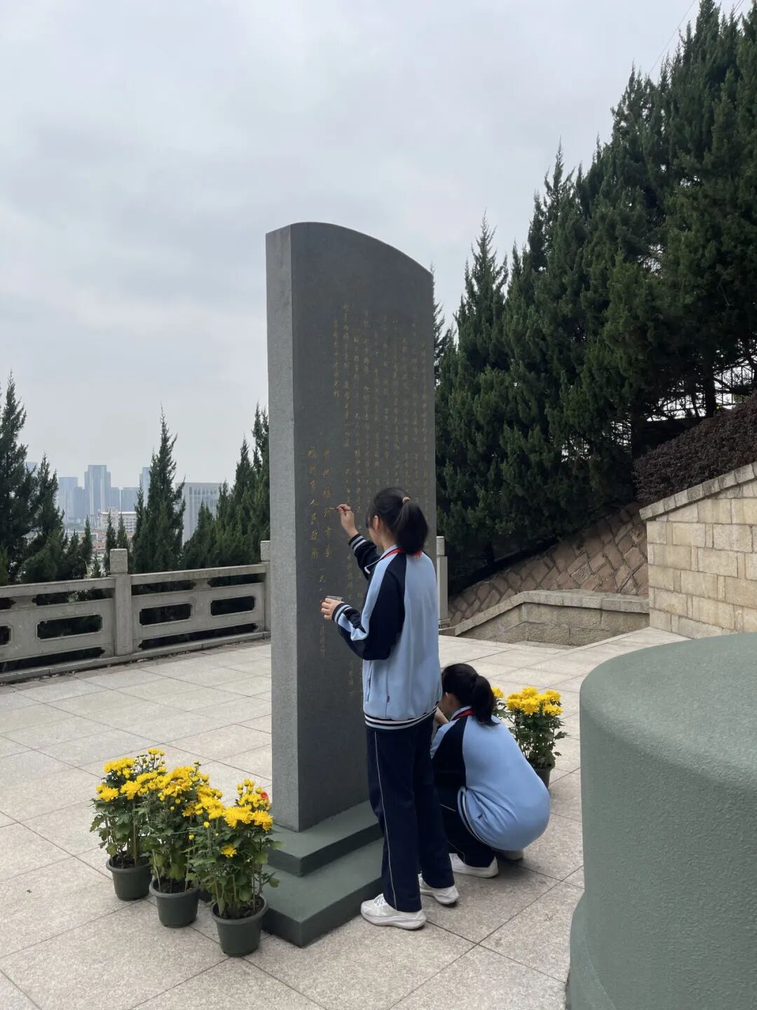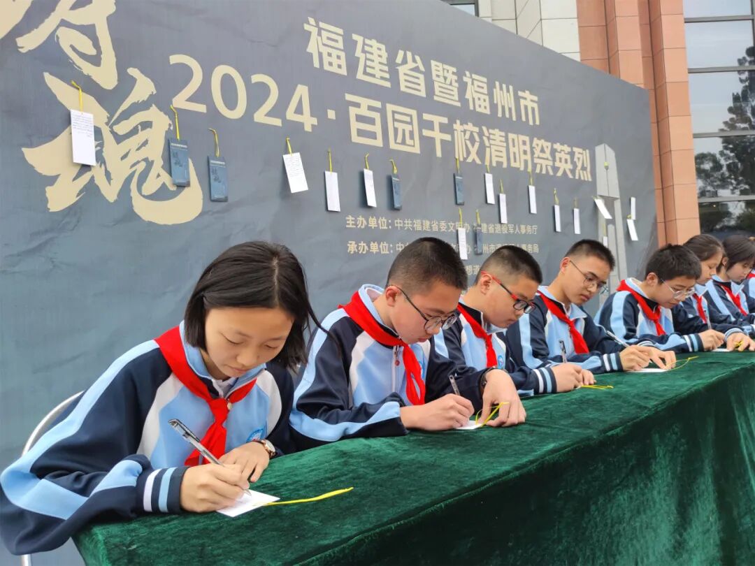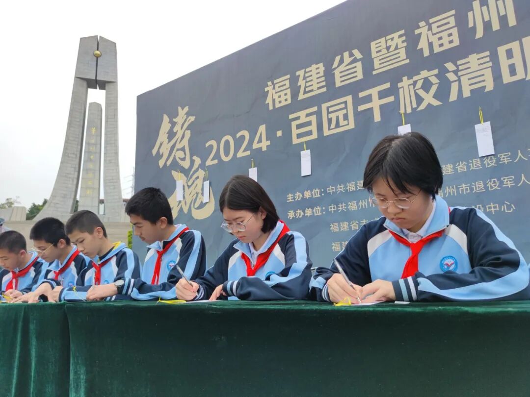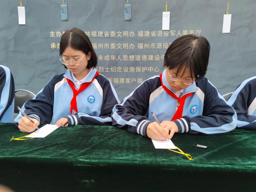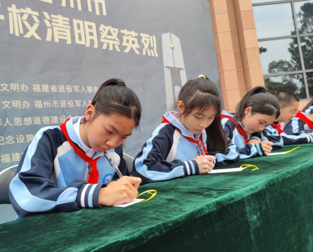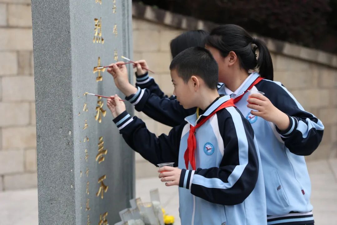 随后,学生依次参加了“倾听一段红色故事、书写一张寄语卡片、举行一场缅怀仪式、开展一次志愿活动、进行一次描金描红”等活动。