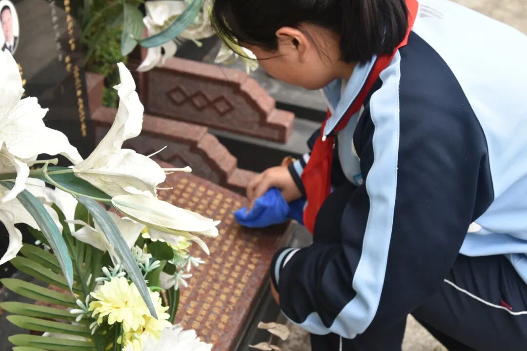 慎终追远,饮水思源。清明祭扫,缅怀先烈,是红色革命精神的传承,更是一堂生动的课。作为新时代青少年,更有责任、有义务将烈士们的精神发扬光大,学习他们坚定的理想信念、崇高的道德品质、无私的奉献精神。铭记英烈事迹,继承英烈遗志,让英烈丰碑矗立心中,让英烈精神薪火相传。