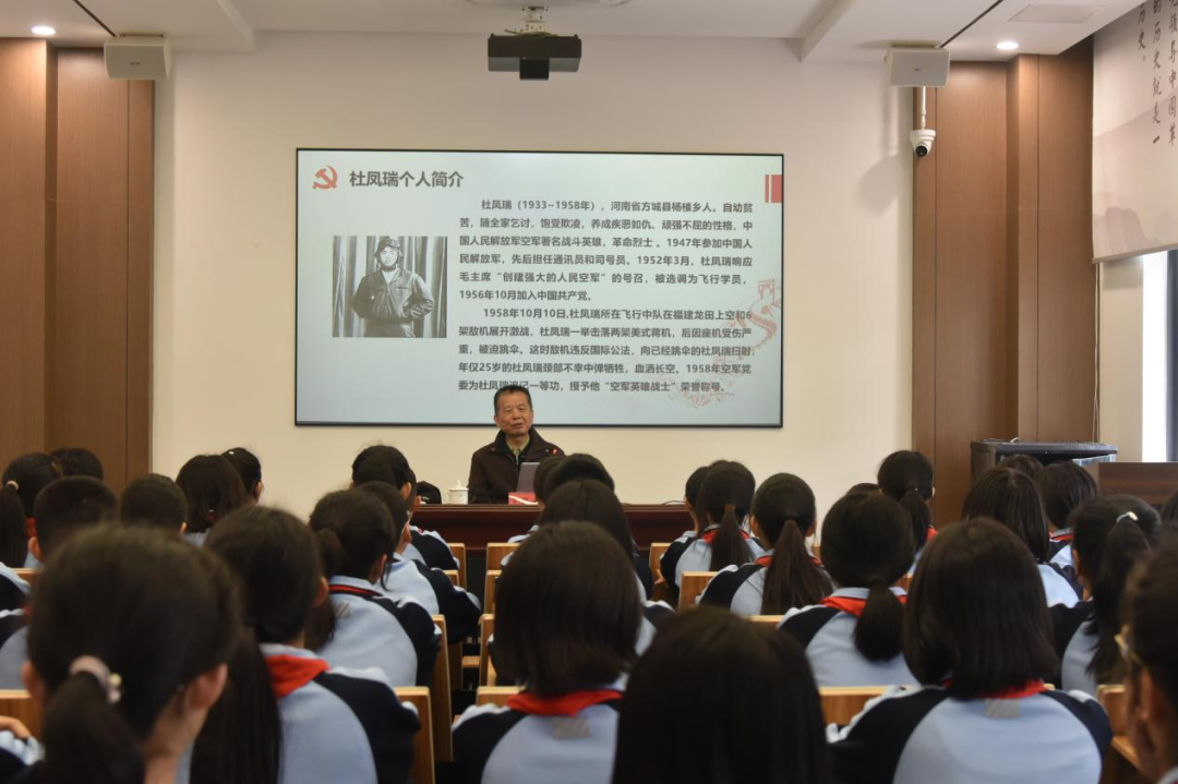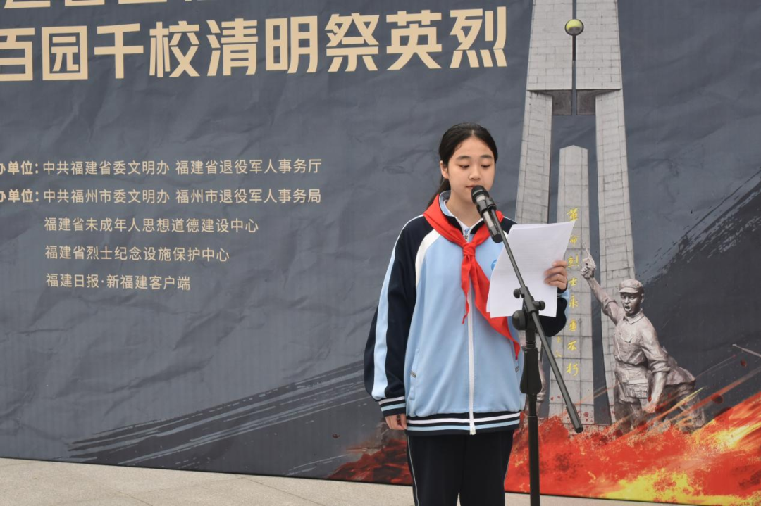 学生代表李子睿发言,提出寄托哀思、缅怀先烈的倡议:祭奠革命先烈、传承红色基因、践行文明祭扫等,争做新时代好少年。