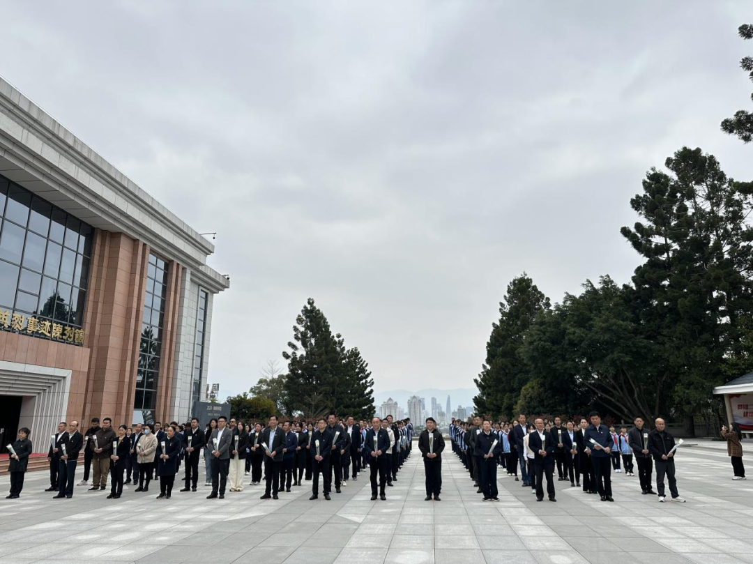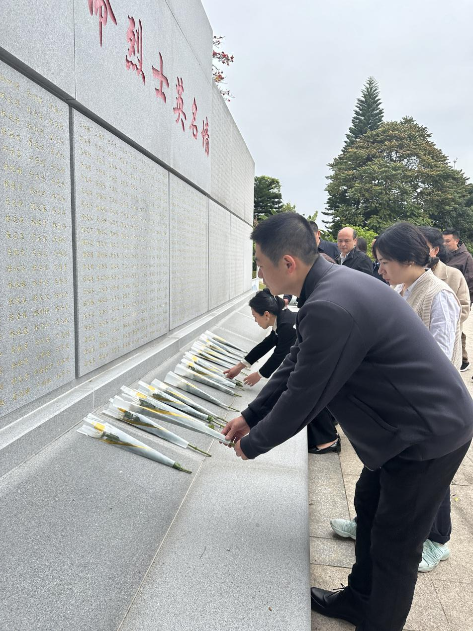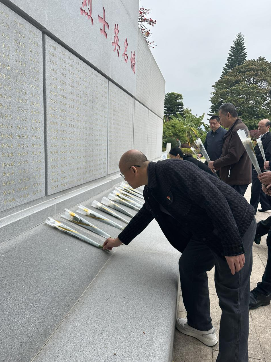 全体人员手捧鲜花,来到革命烈士纪念碑前瞻仰革命先烈,依次将鲜花摆在革命烈士纪念碑前以寄托哀思。