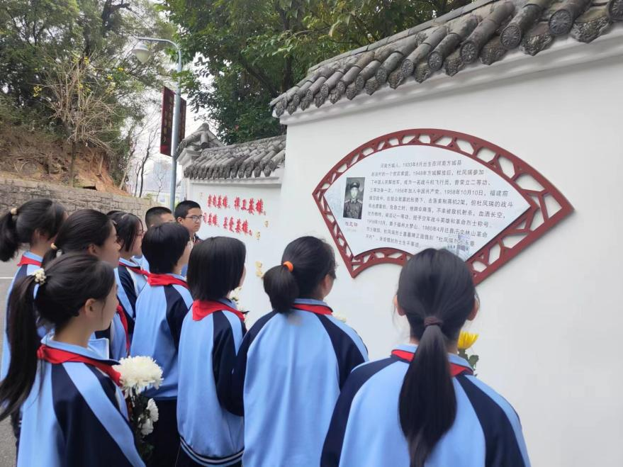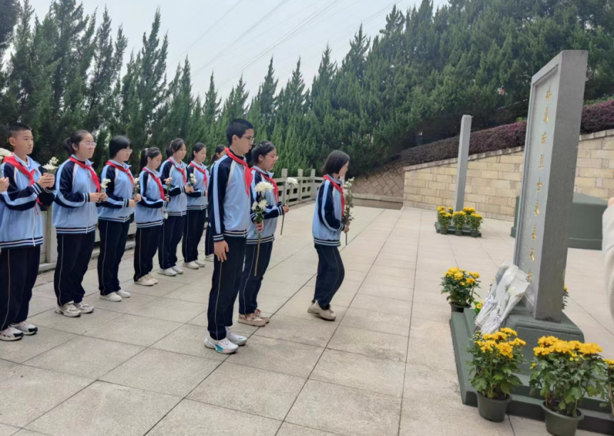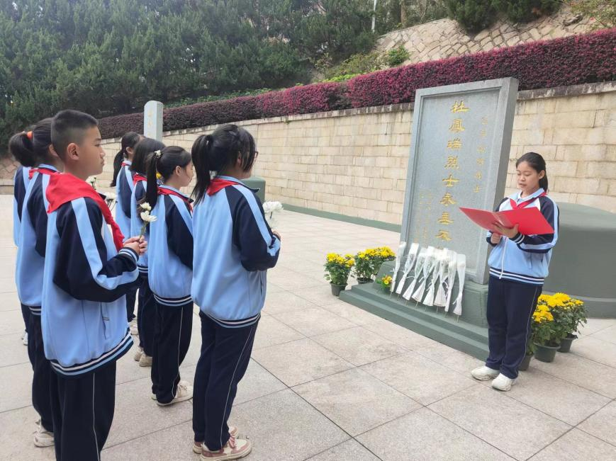 先烈精神千秋颂,英雄浩气万古存。为缅怀先烈,弘扬革命精神,激发学生爱国主义情感,在清明节来临之际,点点taptap官网(格致中学西洪校区)部分学生来到了文林山烈士陵园,开展了“铭记先烈遗志,赓续红色血脉”的清明节杜凤瑞烈士陵园祭扫活动。
