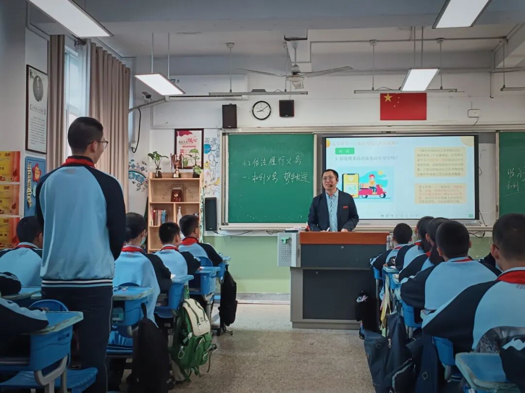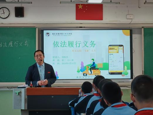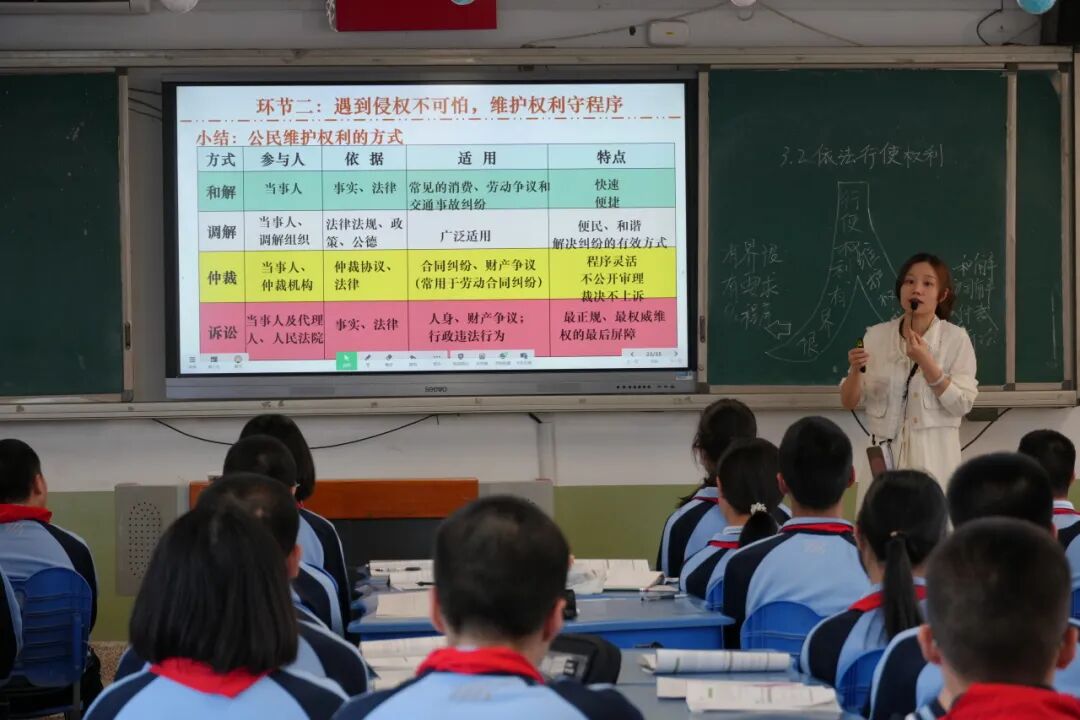 4月11日上午,我校道德与法治学科市级公开课听评课活动如期而至,刘俊杰老师、陈冰琳老师分别开设《依法履行义务》、《依法行使权利》展示课。