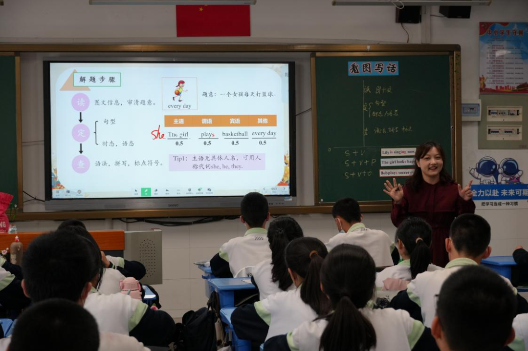 格致中学鼓山校区刘春辉老师执教的《中考题型:看图写话的解题策略》以丰富的活动为载体,师生一起经历了一段充满想象力和创造力的学习旅程。引导学生通过观察和分析,在解题析题的过程中归纳解题思路和分析策略。课堂上每位同学都积极参与,学习气氛浓厚。课上,同学们一致认为看图写话不仅仅是一种语言学习的工具,更是一种思维训练的方式。
