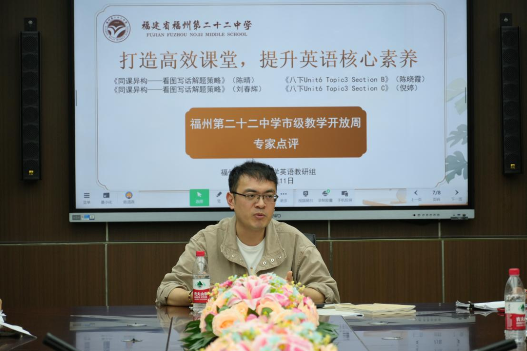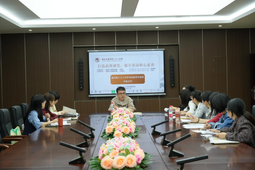 课后,福州市教育研究院英语教研员张宏老师对公开课进行点评,认为课程内容紧跟时代发展,对教学内容和教学方法予以充分肯定,学生参与度高,课堂氛围好。同时对我校英语教学团队虚心求教的态度及深入打磨精品课的研讨精神十分认可,并提供了许多建设性意见。