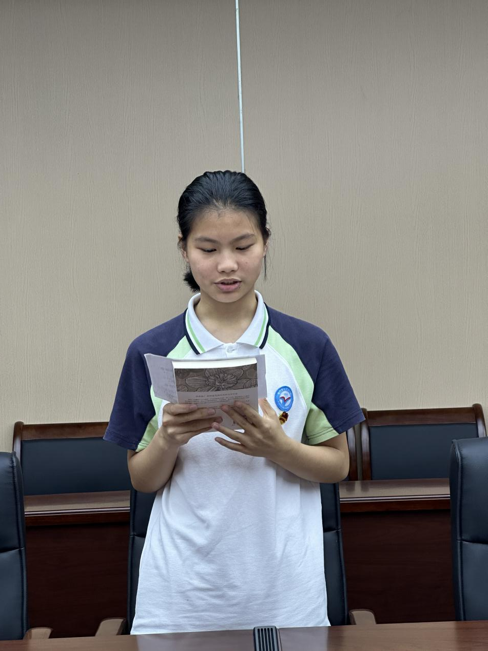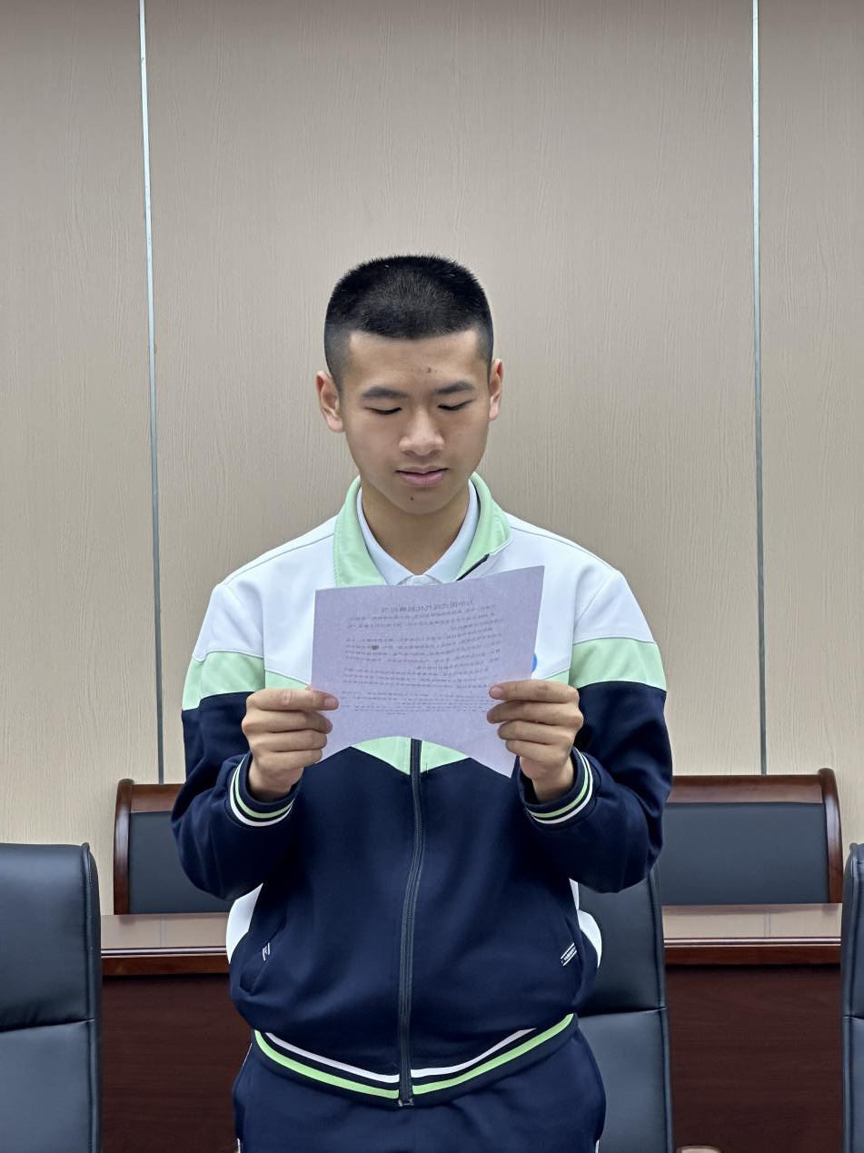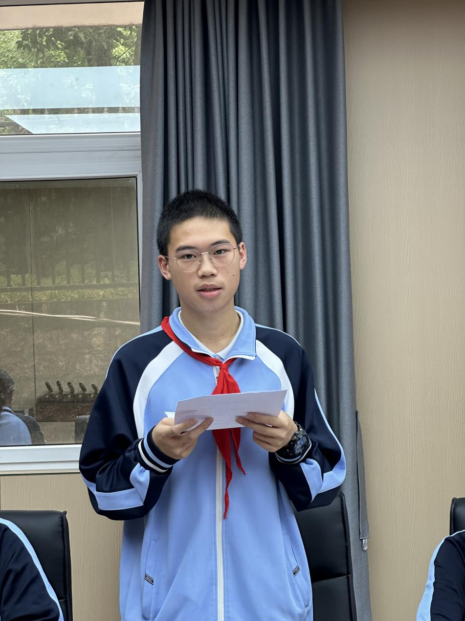 学生团员蔡恒烁同学表示,青少年是国家的未来,肩负着继承和发展祖国的重大使命。青少年一代应当自觉树立正确的世界观、人生观和价值观,具有坚定的民族自豪感和责任感,以积极的精神面貌投身学习为现代化建设做准备。