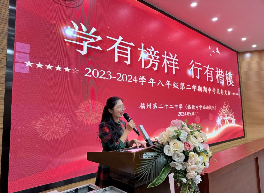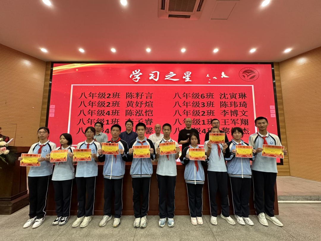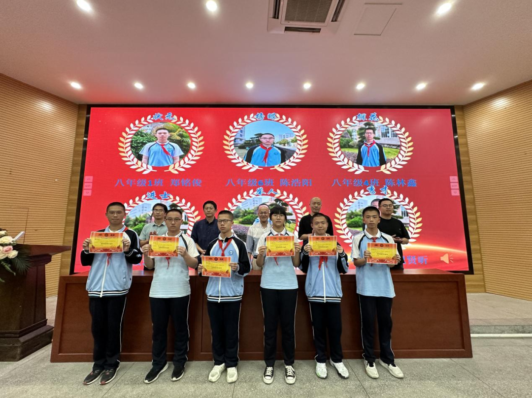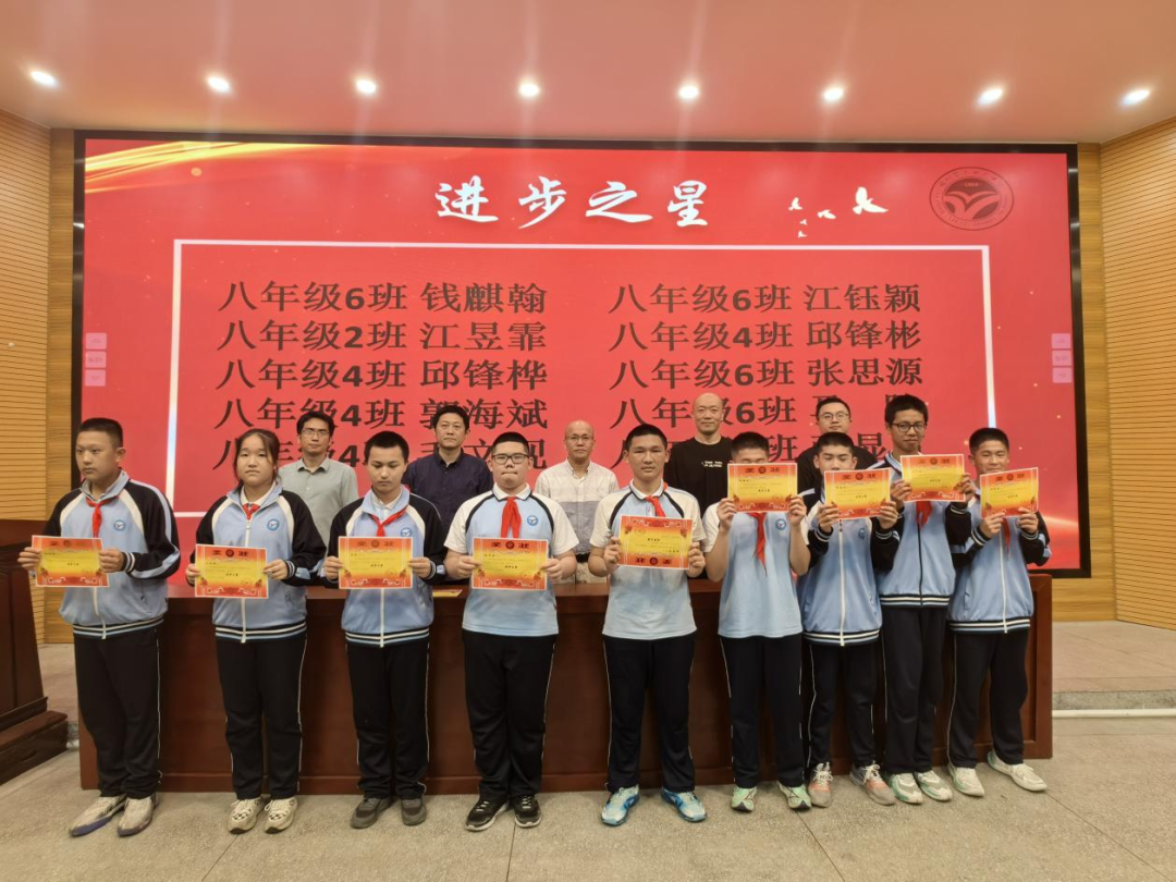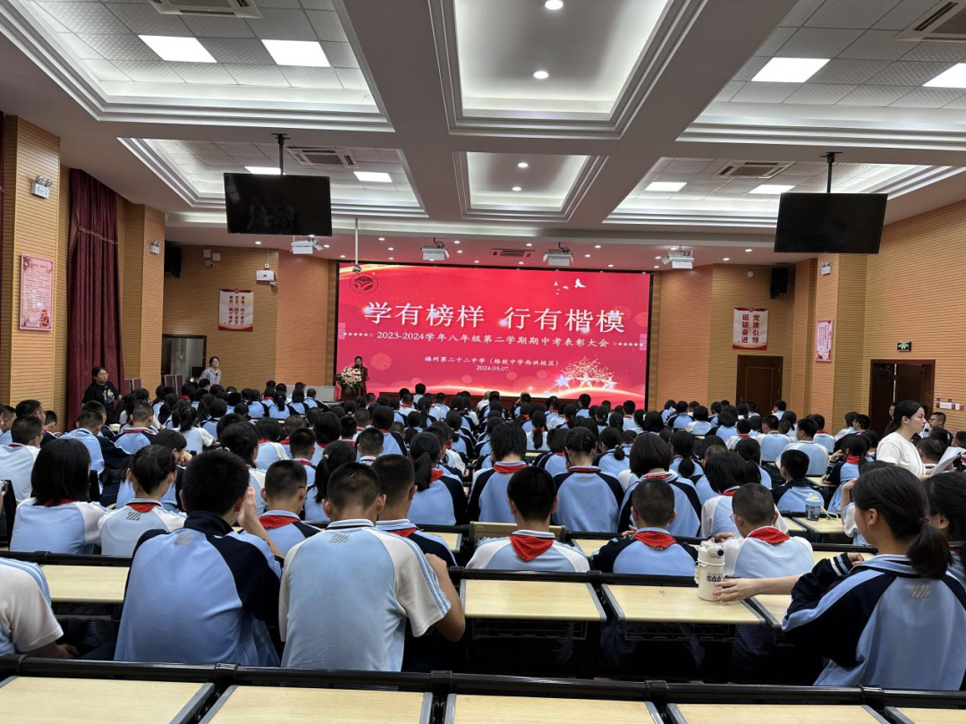 有人说奋斗是青春的底色,奋斗的青春是对时代问卷最好的回答。为表彰先进、树立榜样,展示年段优秀学生风采,激发同学学习积极性,5月8日下午,我校初二年段于阶梯教室召开2023—2024学年八下期中考试表彰大会。陈龙耀校长、陈磊副校长携各处室中层干部出席了本次表彰大会,大会由校少先队大队辅导员、初二段长倪婷老师主持。