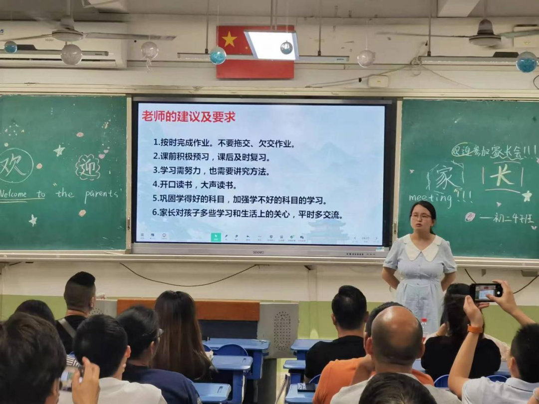春华将落尽,夏木待成阴。为了进一步加强学校与家庭、教师与家长之间的沟通,增进家长对学校工作的了解,提高家长的家庭教育水平,引导家长关注孩子的身心健康,形成齐抓共管教育合力,创建良好的育人氛围,2024年5月7日晚召开了“家校同心行 共筑成长梦”初二年段家长学校活动。陈龙耀校长、教务处黄照主任以及初二年段全体教师参与本次活动,活动由年段长倪婷老师主持。