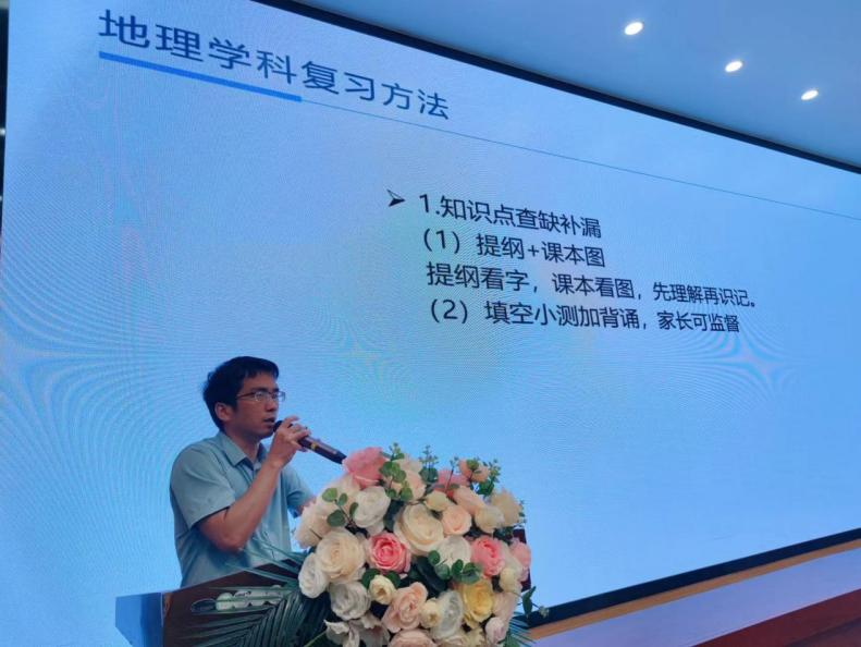 教务处黄照主任和叶维伟老师分别跟家长们分享了地理学科、生物学科的有效的学习方法和备考策略,帮助孩子们提高学习效率,并指导家长在孩子备考过程中如何给予支持和帮助,引导家长们积极参与孩子的学习过程,关注他们的学习进度和心理状态,给予他们适当的鼓励和支持,共同助力孩子的进步。
