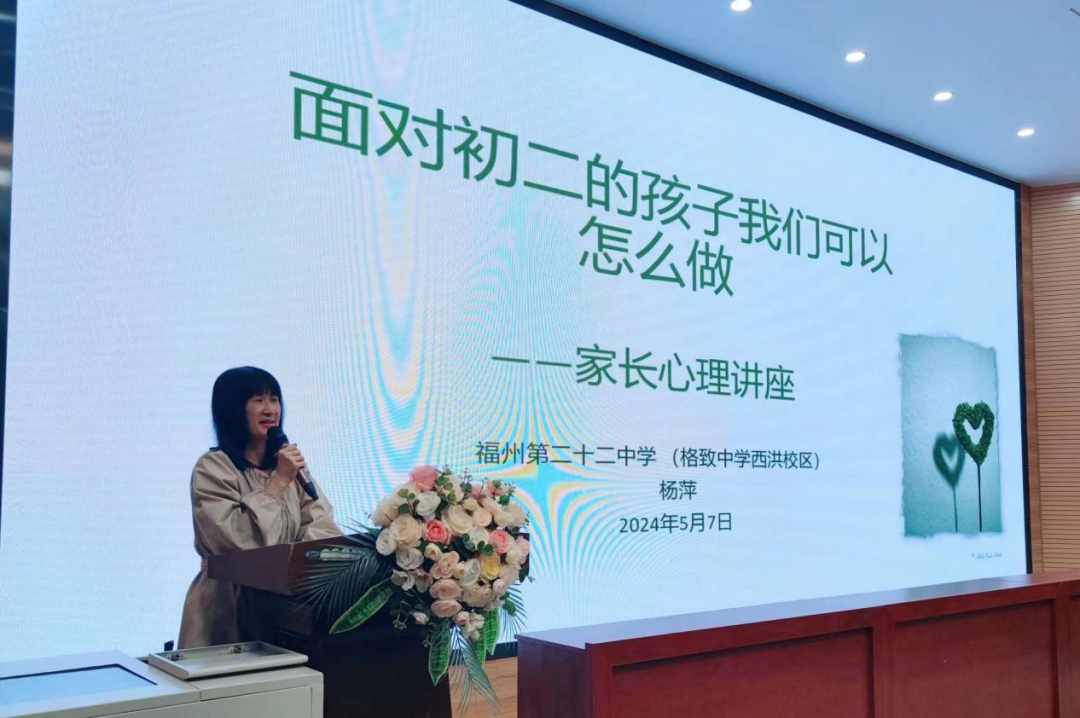 杨萍老师介绍了学校心理健康教育工作举措,从什么是“初二现象”、为什么会有“初二现象”、面对初二的孩子我们可以怎么做等几个方面展开论述,分享了呵护孩子身心健康成长的小建议,引导家长细心觉察孩子的变化,正确看待孩子的成绩,用发展的眼光看待孩子的成长历程,让每一份爱以轻灵的姿态陪伴孩子成长。