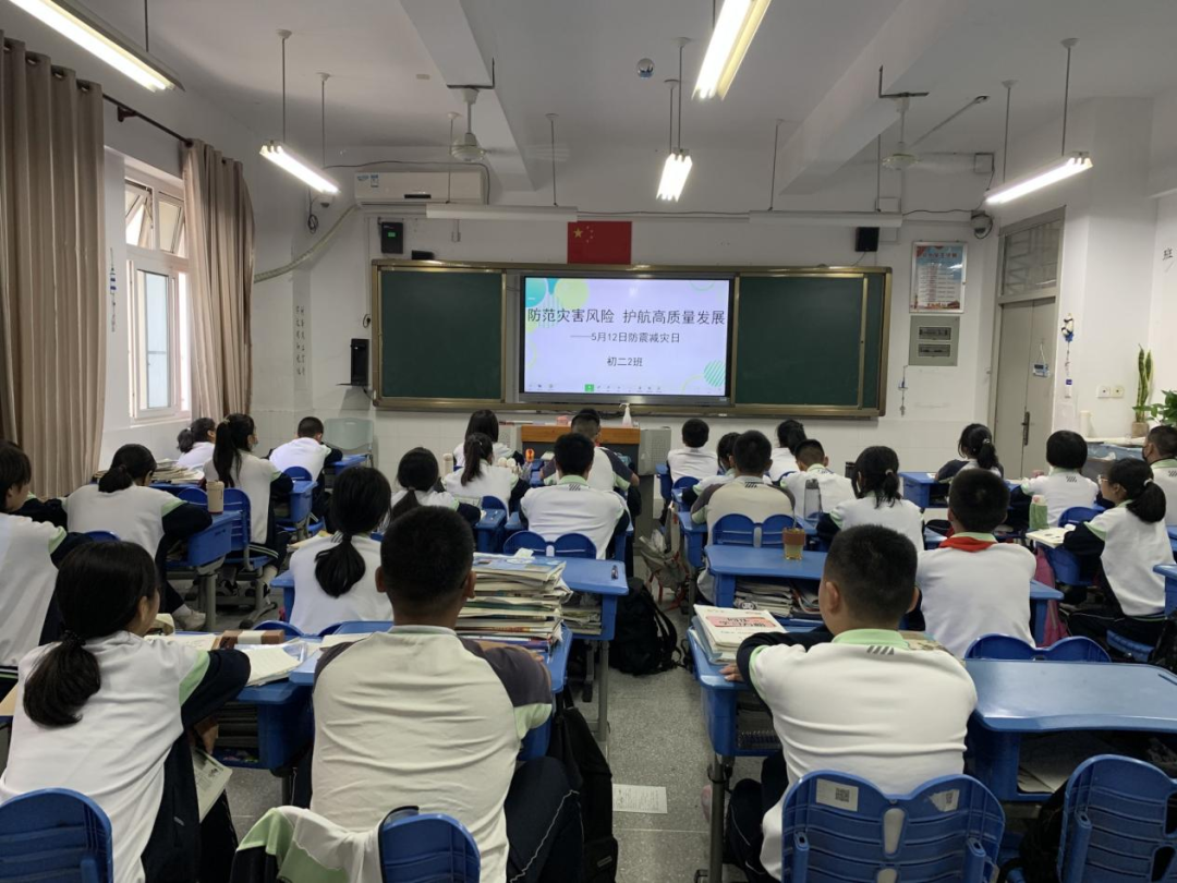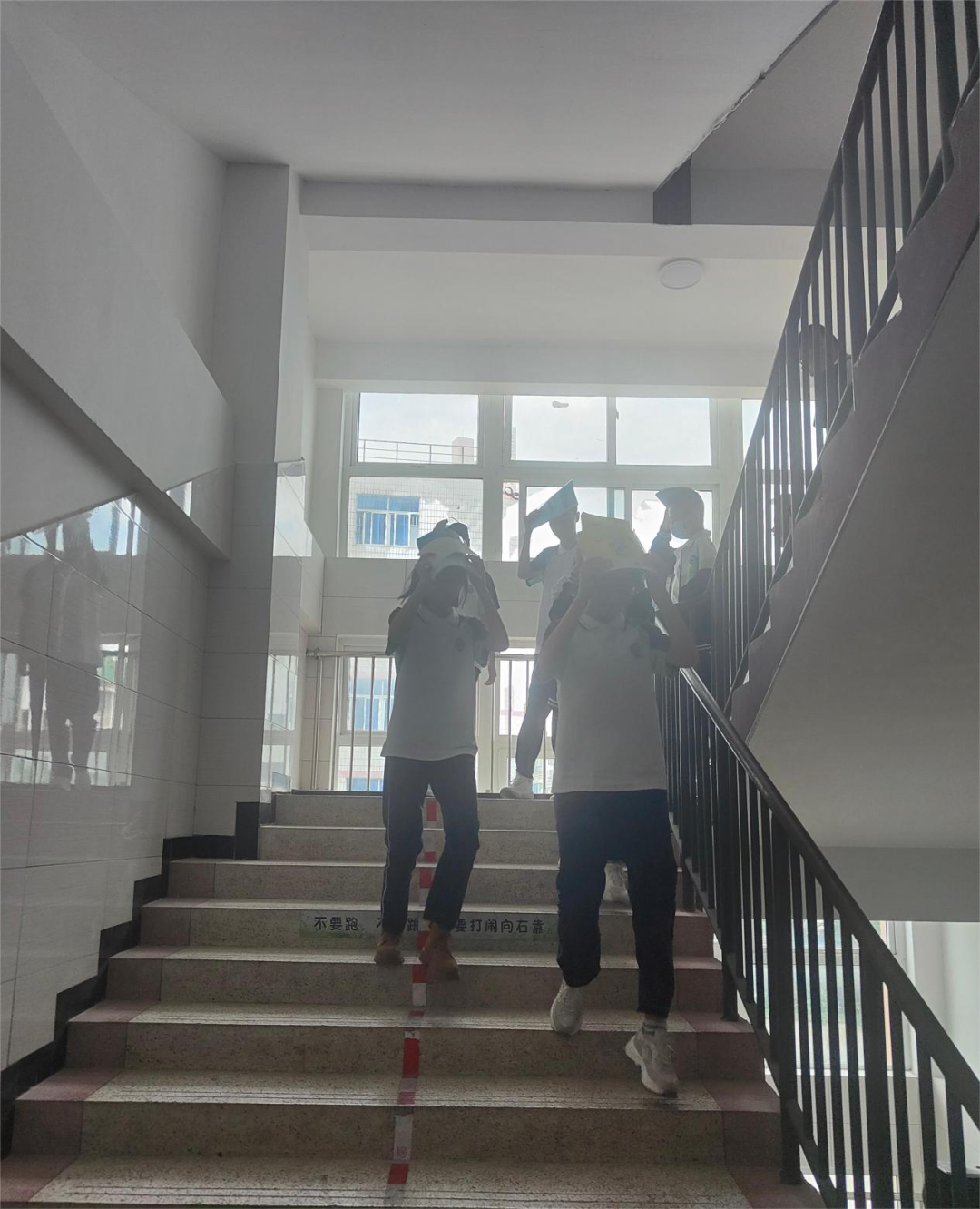 5月11日8:45随着一阵急速的警报声响起,我校2024年防震减灾演练活动拉开序幕。听到警报声的第一时间,学生马上停下手里的一切活动,班级里的教师立即组织学生采取自救措施,学生用书包或厚书本护住头部,躲在教室内课桌下或墙角边。随后班主任立即组织学生按照规定逃生路线撤离,同时负责楼道出口和转角的安全员老师也迅速到达工作岗位。在撤离过程中,学生们按照要求双手抱头,保护好自己的头部,整个过程没有出现推挤、踩踏事件,在极短的时间内有序疏散到校园操场中央。到达操场后,班主任及时清点各班人数,检查学生情况,向陈磊副校长报告学生撤离情况。