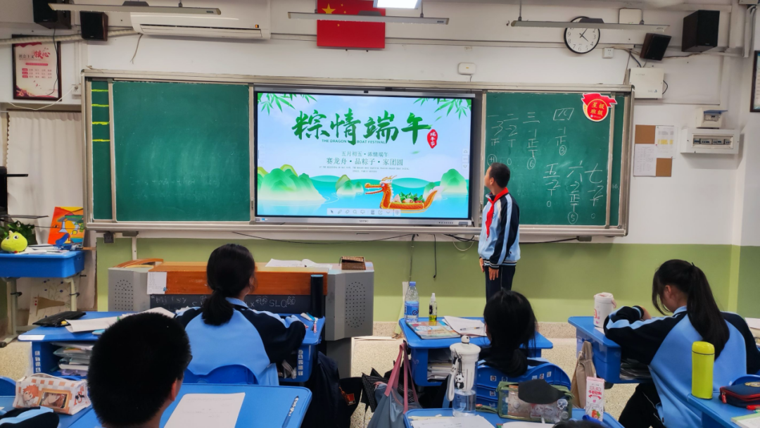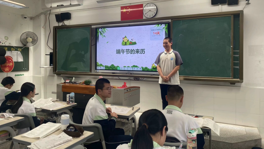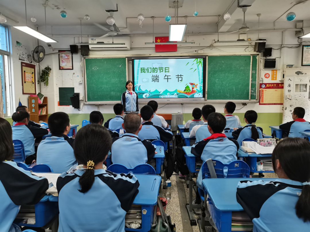 各班开展端午节主题班会,在班会课上,各班班主任通过讲端午习俗、说屈原故事,带领同学们了解关于端午节的来历和文化内涵。让学生明白端午节不只是粽子节,龙舟节,更是民族节,爱国节。