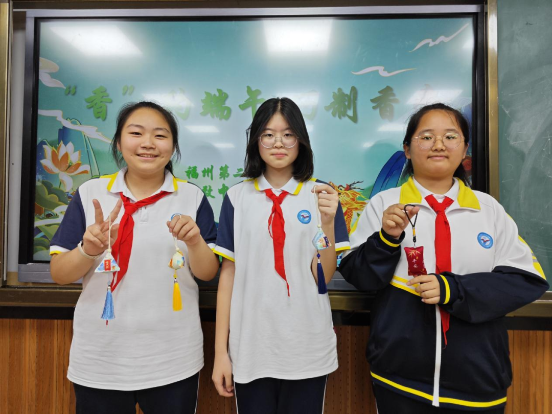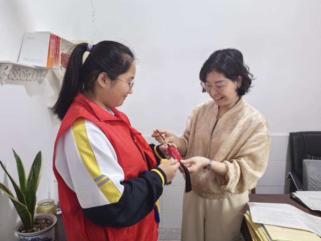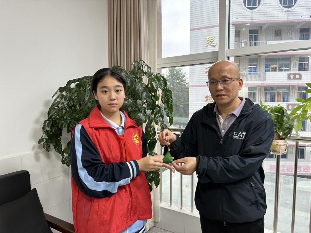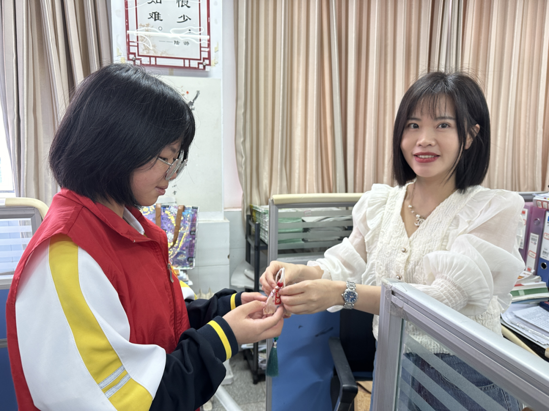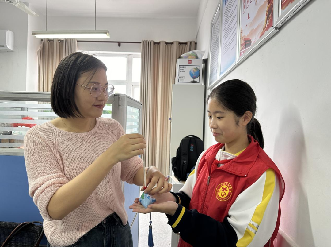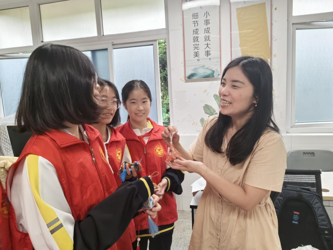 赛后,同学们寄最真挚的感谢与祝福于自己精心制作的香囊中,亲手将香囊送给了老师们,希望精致的香囊和清新的艾草能为老师们带去一份好心情。