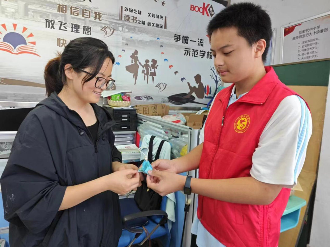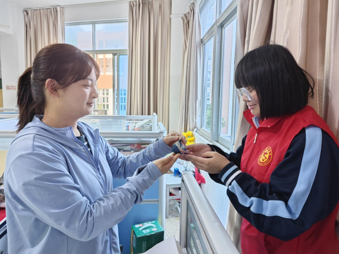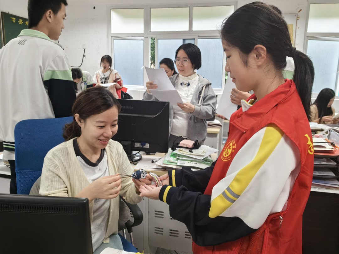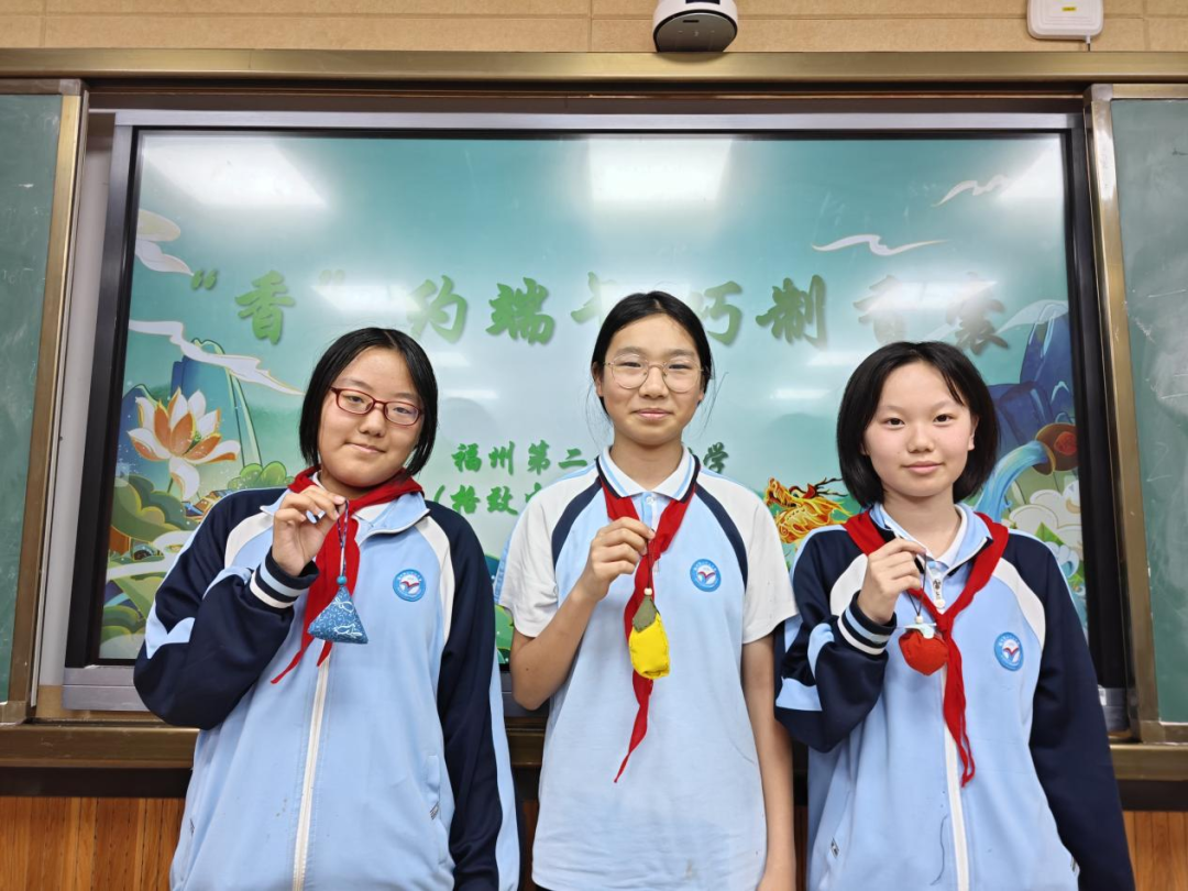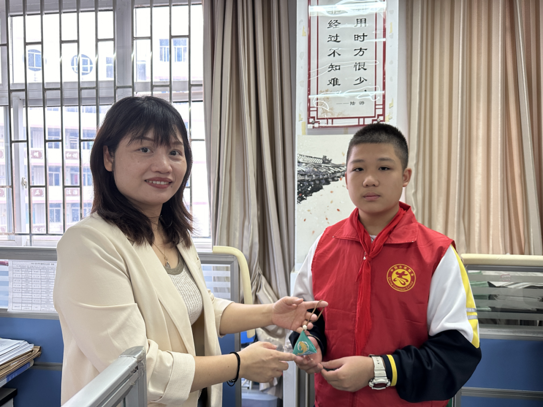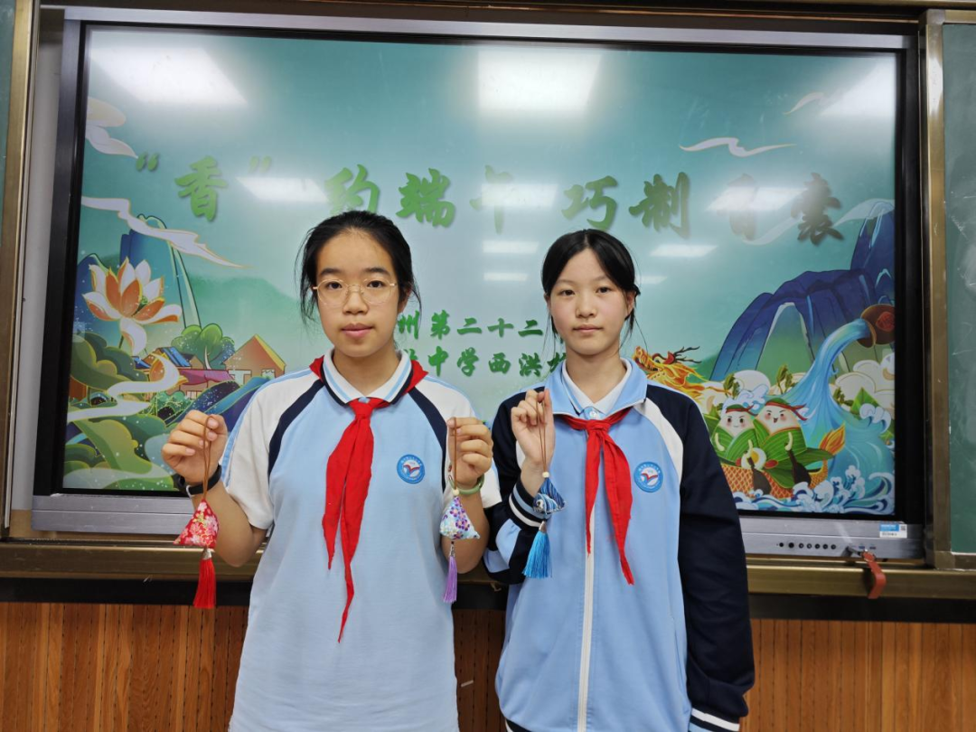 赛后,同学们寄最真挚的感谢与祝福于自己精心制作的香囊中,亲手将香囊送给了老师们,希望精致的香囊和清新的艾草能为老师们带去一份好心情。
