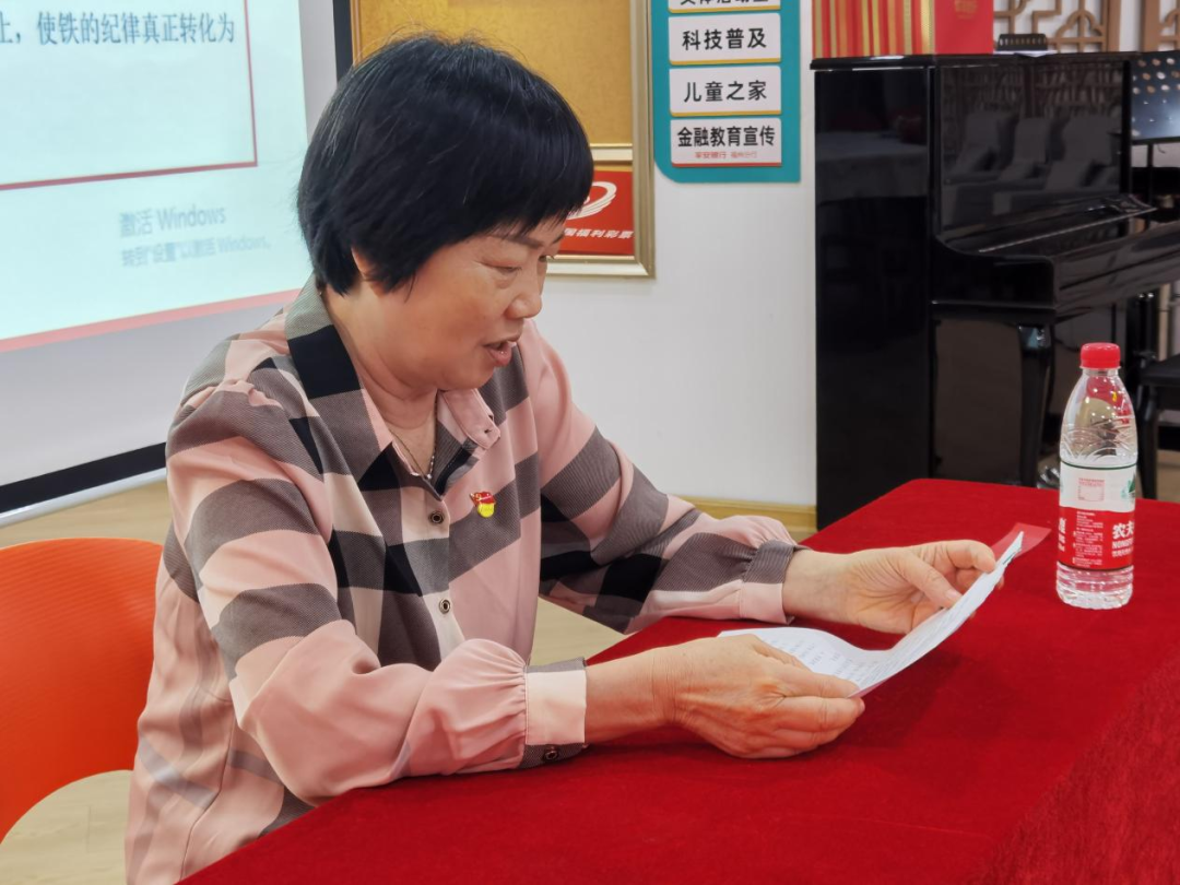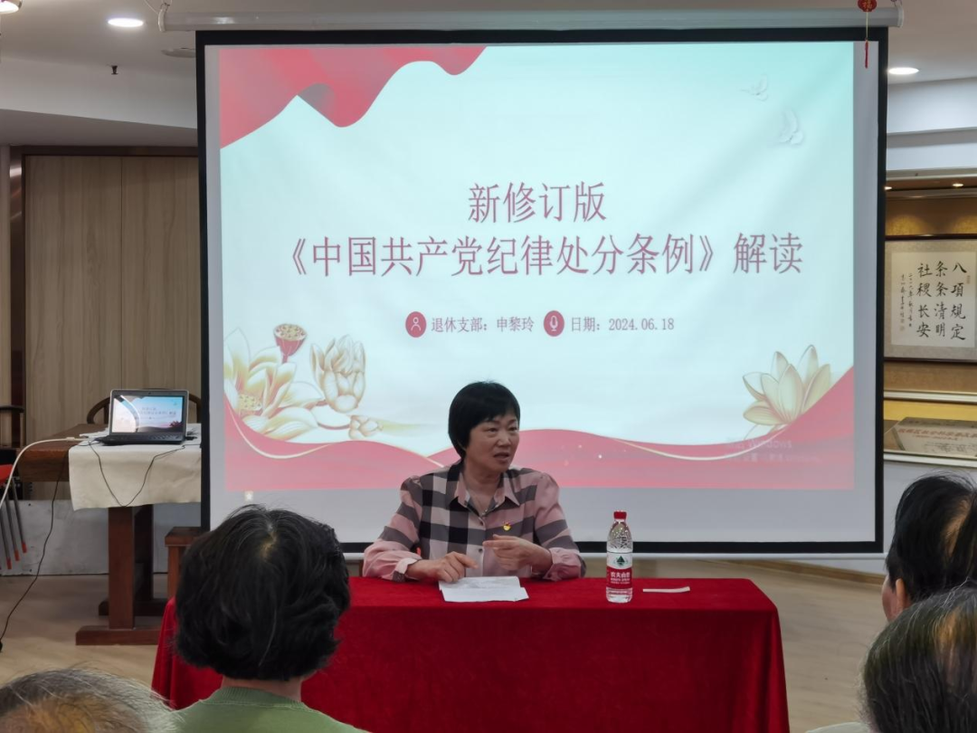 随后,退休支部申黎玲书记为老党员们上了一堂主题为《新修订版<中国共产党纪律处分条例>解读》的党纪学习教育专题党课。通过学习,老党员们深刻认识修订《条例》的重大意义,理解准确把握《条例》修订的主旨要义,明白抓好《条例》的贯彻执行,是以严明的纪律推进党的自我革命,从而对党纪条例有了更加深入的理解。