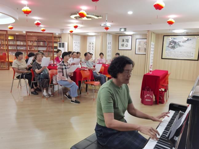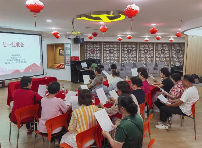 在林峰老师的带领下,大家共唱《唱支山歌给党听》《没有共产党就没有新中国》等经典红歌,深情、激昂的歌声表达了对党的无限忠诚和对祖国的无比热爱。