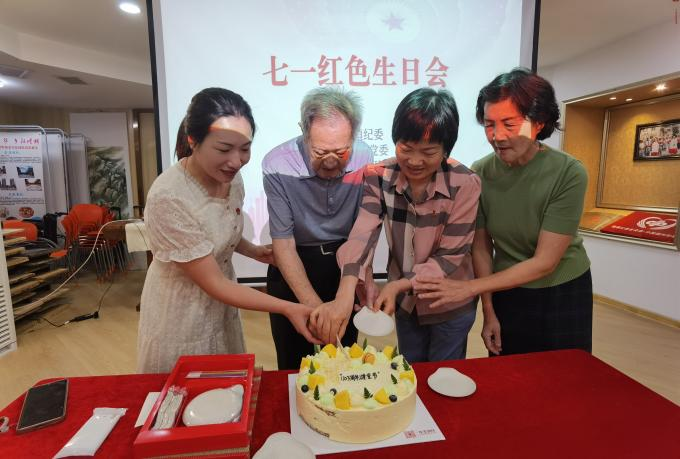 最后,退休老党员们一起庆祝“七•一”党的生日,庆祝建党103周年。分享甜蜜蛋糕的同时,回忆党的光辉历程,分享入党心路历程和故事,坚定信念,永不忘初心。