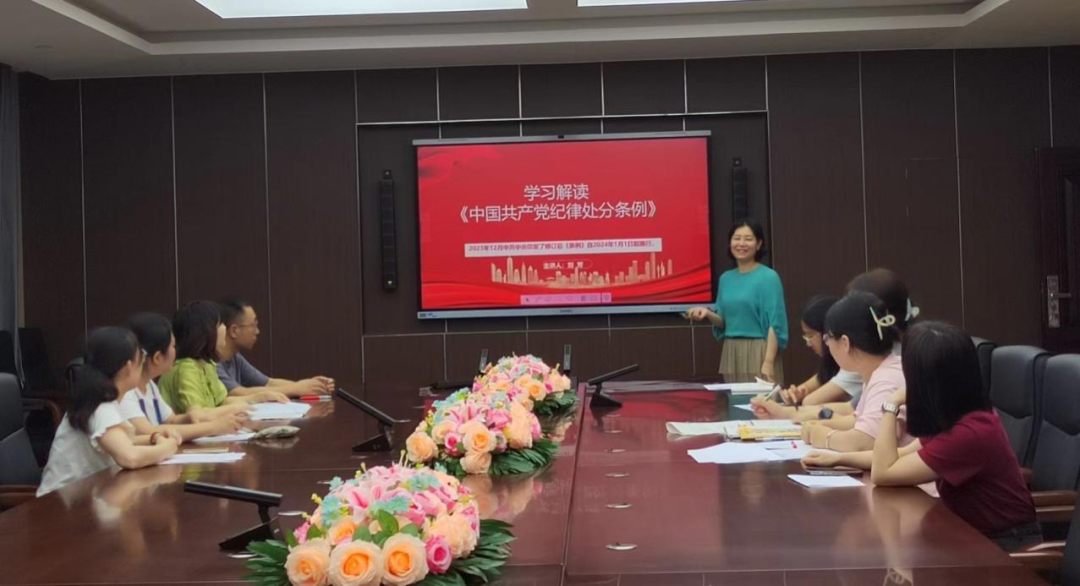 文科支部书记刘芳以学习解读《中国共产党纪律处分条例》为题,围绕“《条例》为何再次修订?”“此次修订有哪些突出特点?”“将对推动全面从严治党向纵深发展起到什么作用?”等内容展开了详细的解读,带领全体党员干部深刻领会《条例》精神。她指出,作为党员干部首先要在明理知事上“下细功”,准确掌握党的纪律规矩,进一步明确日常言行的衡量标尺,用党规党纪校正思想和行动。要将党的纪律规矩内化于心、外化于行,时刻以党规党纪为镜,检视自身言行,确保不敢越雷池一步。