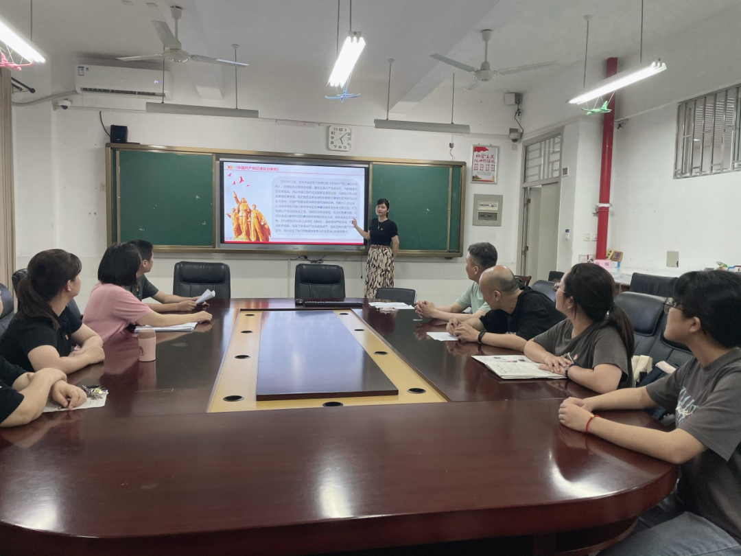 校党总支副书记、校长陈龙耀围绕党的纪律建设百年历程,从新民主主义革命时期党的纪律建设、社会主义革命和建设时期党的纪律建设、改革开放和社会主义现代化建设新时期党的纪律建设三个方面,细致解读了党的纪律建设,同时结合学校教育教学工作、支部党员的思想、工作、生活和作风实际,教育引导全体党员搞清楚党的纪律规矩是什么,弄明白能干什么、不能干什么,把遵规守纪刻印在心,内化为言行,融入日常、化作经常。他强调,纪律是“紧箍咒”,也是“护身符”。支部党员要深入学习《条例》,深化《条例》理解运用,把他律要求转化为内在追求,自觉赓续红色血脉、砥砺崇高精神、涵养浩然正气,使学习党纪的过程成为增强纪律意识、提高党性修养的过程。