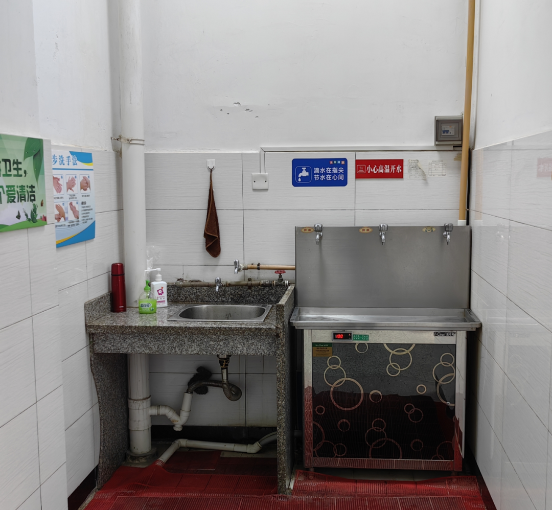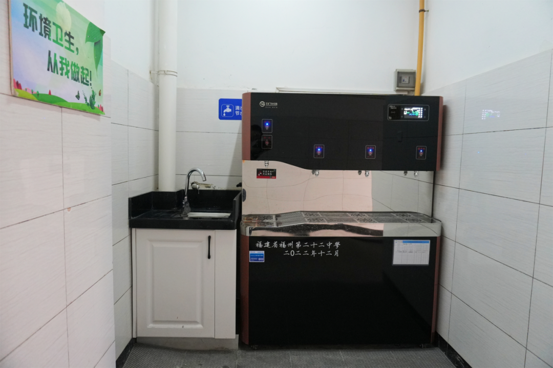 全新更换的饮水机拥有3个出水口,设置纯净水、温水、热水三档温度,可以满足学生对饮用水的需求,同时定期更换滤芯,保证水安全可饮用。