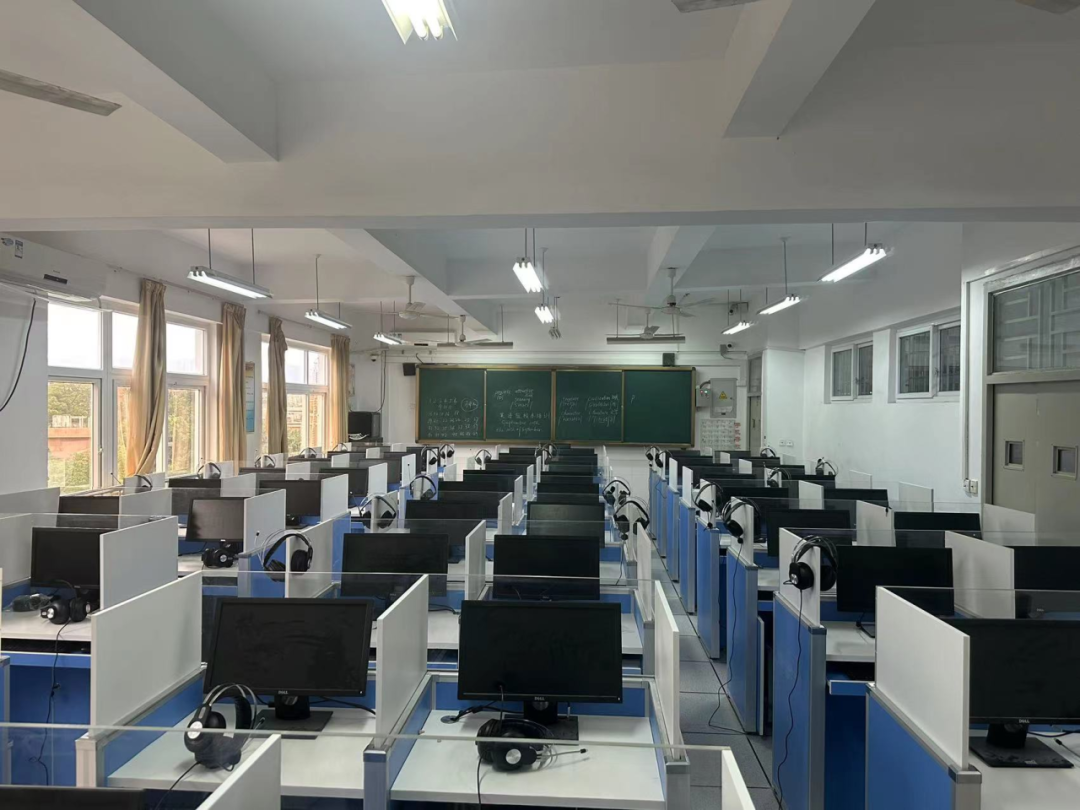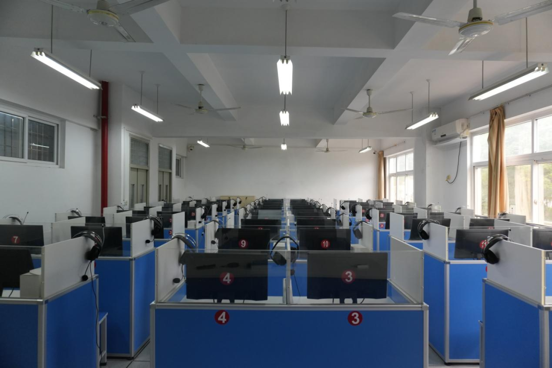 在思源楼六楼专门设立了英语人机对话教室,教室中每个座位都有一台带耳麦的电脑。电脑安装了英语人机对话智能测评系统,这个系统不仅让英语考试更“高效、公正、准确、科学”,还能发现学生语音错误和句子完整性不足的地方,大大提高学生英语口语能力。