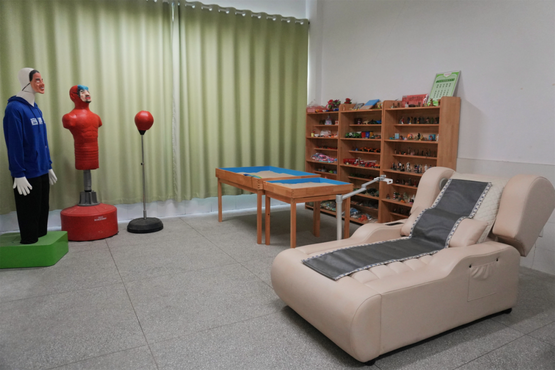 学生的心理健康是至关重要的,学校建设了心理咨询室,咨询室色彩清新,有舒适的沙发,可爱的玩偶,学生坐在其中身心放松。心理团辅室简约大气,定期对学生进行团辅,有助于班级团结,学生身心健康。