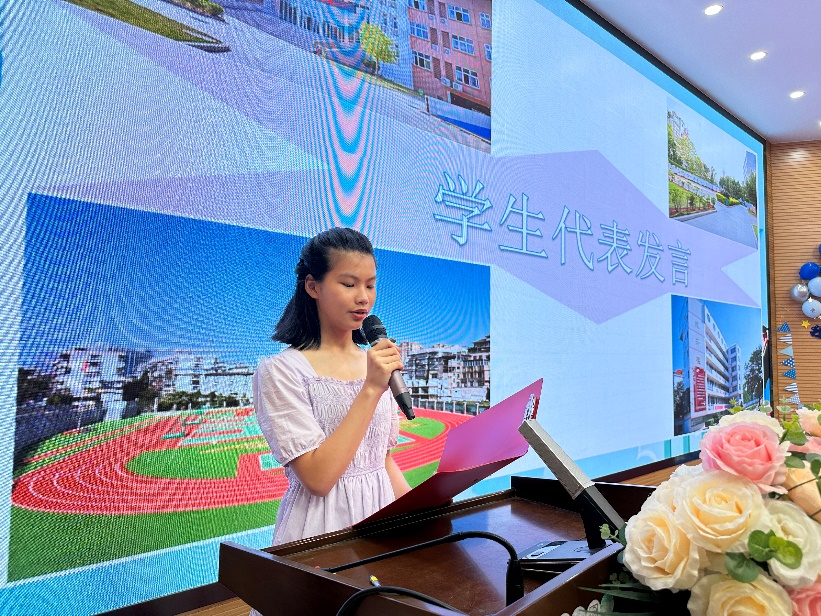 暮然回首已然走到了分别的港口,于若佳同学作为毕业生代表向一路陪伴成长的同学、家长和老师表达了衷心的感谢和祝福。她激励同学们肩负起新时代赋予的使命,满怀期望的去追逐梦想!