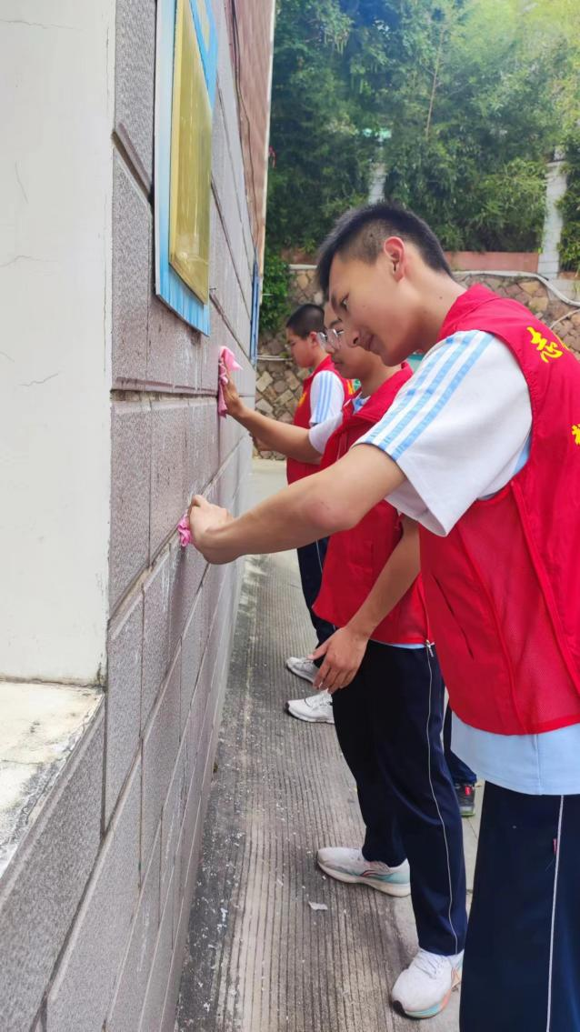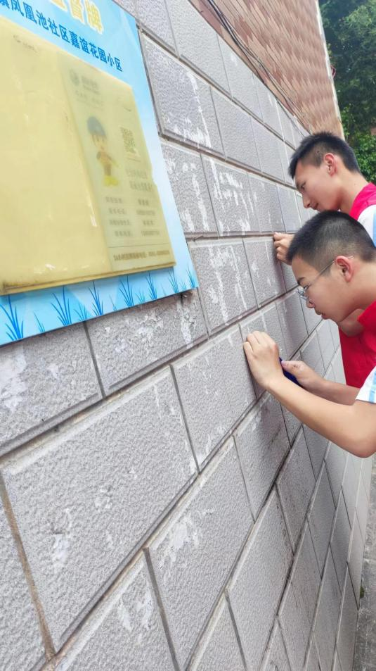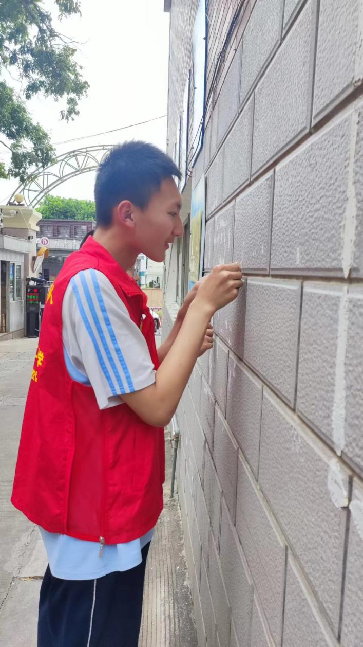 同学们分工合作,有的用铲子铲除顽固的广告,有的用抹布擦拭墙面,每个人都投入到了这场环保行动中。经过几个小时的努力,原本杂乱的墙面变得干净整洁,街道也焕然一新。