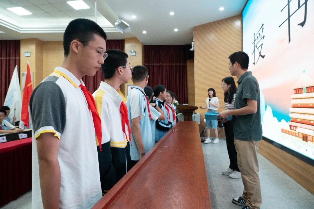 授书仪式同样精彩纷呈。教官将精心准备的研学手册交给老师,再由老师转交给各班级的学生代表。这本手册将成为同学们在研学过程中的宝贵资料,它包含了泉州的历史文化、风土人情、研学任务等方面的内容,为同学们的研学之旅提供了有力的支持。