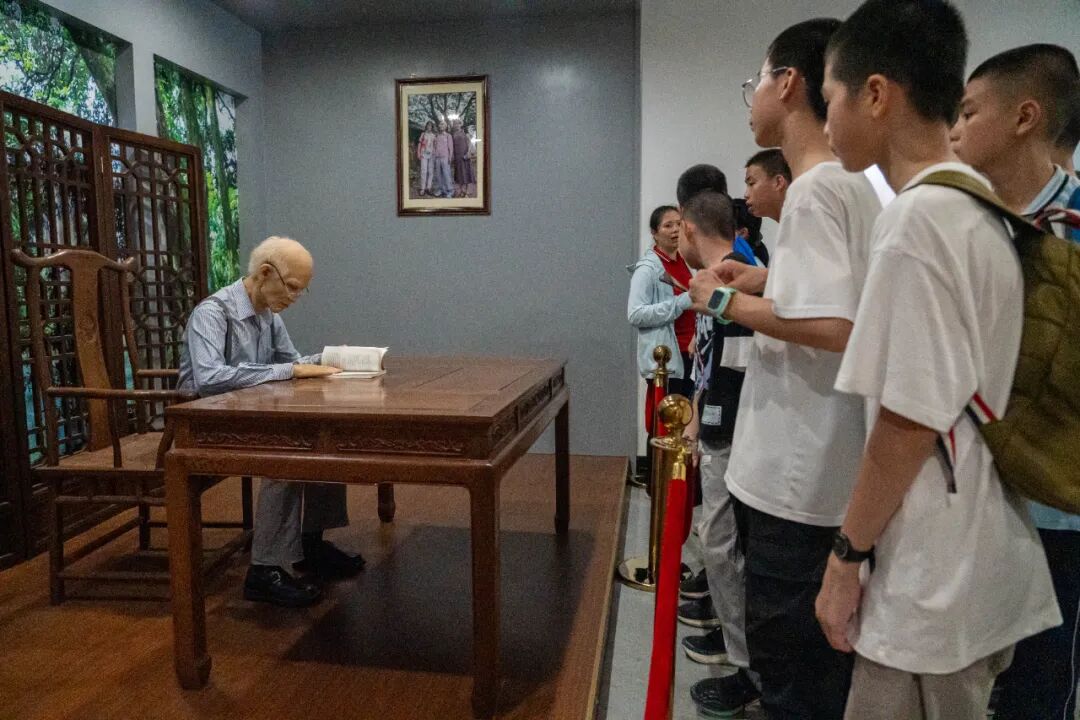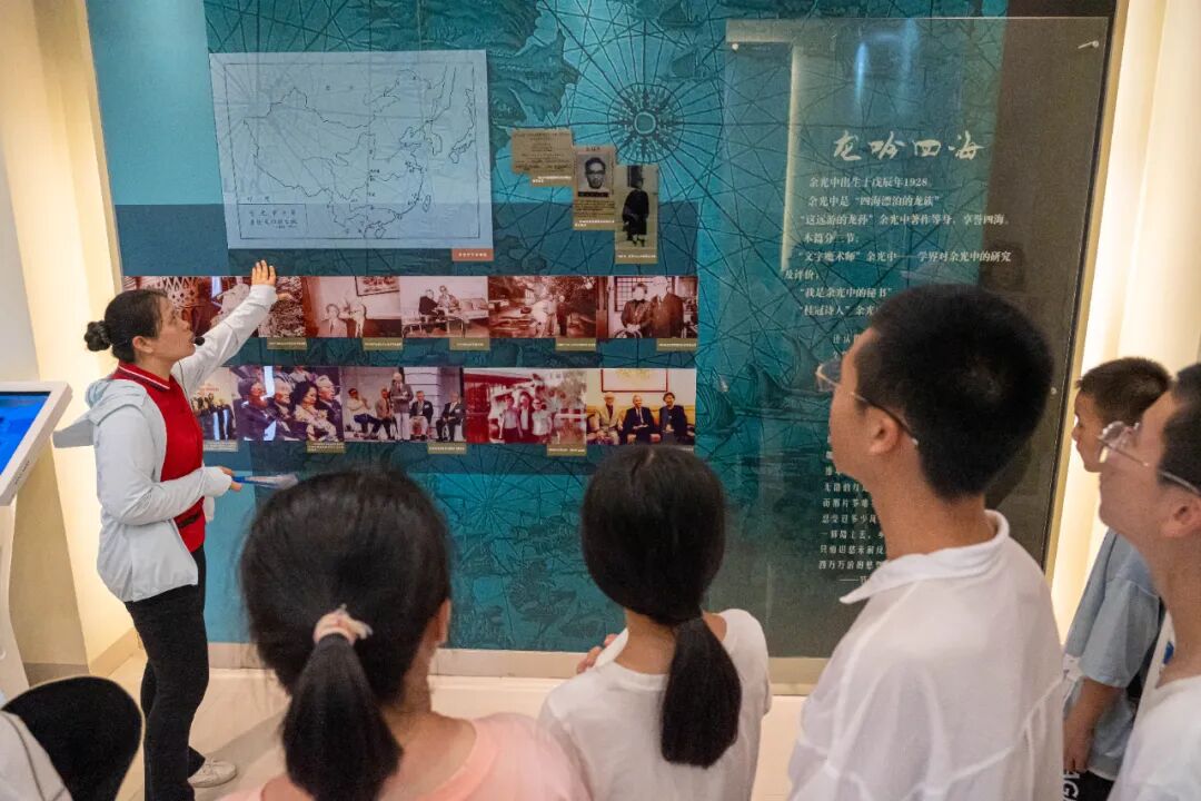 在展厅内,一幅幅珍贵的照片、一件件手稿、一本本著作,无不诉说着余先生的传奇人生和卓越成就。师生们驻足观看,认真聆听讲解,被余先生深厚的家国情怀和文学造诣深深打动。