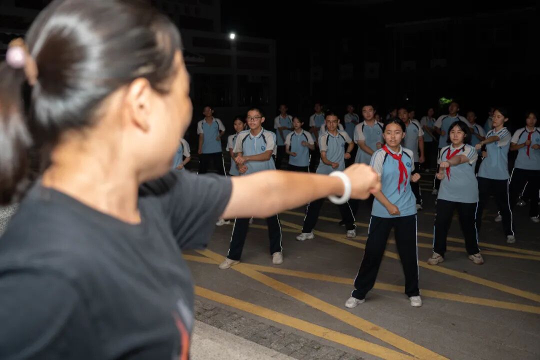 永春白鹤拳,作为福建省七大拳种之一,不仅承载着丰富的历史文化底蕴,更以其独特的武术风格和深厚的技击内涵而闻名遐迩。当夕阳的最后一抹余晖悄然隐退,营地的夜晚并未因此沉寂。在这样一个宁静而深邃的时刻,一群怀揣着对武术热爱的同学们,齐聚操场,共同开启了一场关于白鹤拳的学习之旅。在教练的引领下,同学们开始了白鹤拳的初步学习。从最基本的拳法、掌法到步型的转换,每一个动作都需要反复练习,力求精准无误。同学们在教练的耐心指导下,一遍遍地重复着白鹤拳的套路。汗水浸湿了衣衫,但他们的眼神却愈发坚定。在星光的照耀下,他们的身影仿佛与白鹤一般轻盈而有力。