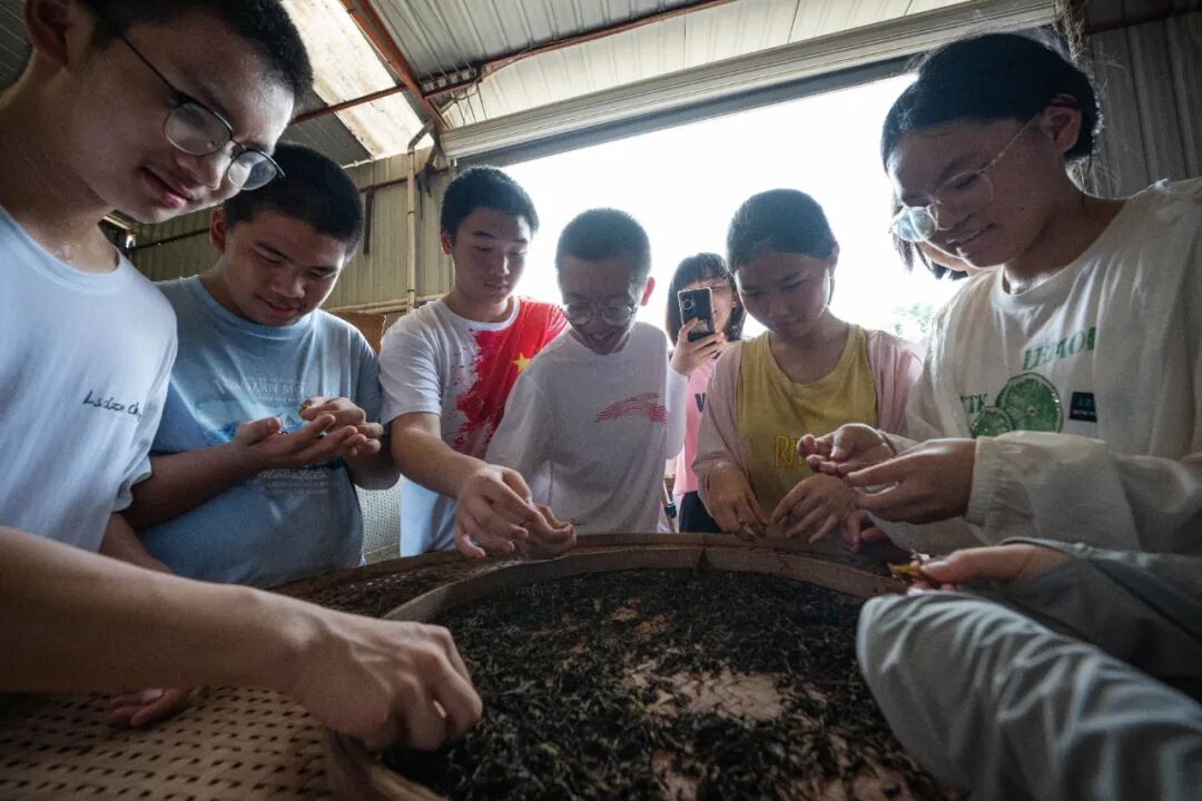 春风拂面,茶香四溢,同学们踏上了一场追寻茶韵的研学之旅——姬茶茶园。在这里,他们每一步都充满了茶香的熏陶,每一刻都沉醉于茶韵的魅力之中。在茶农的悉心指导下,学生们亲自体验了采摘茶叶的过程,感受到了从茶树上轻轻摘下嫩叶的喜悦。随后,同学们仔细观察茶农们的制茶工艺,感受他们对茶韵的热爱与执着。茶农们熟练地操作着工具,将茶叶揉捻、干燥,每一步都凝聚着对茶韵的敬畏与追求。同学们也尝试了一些制茶工序,亲手感受茶叶在手中的变化,更加深入地理解了茶韵的奥妙。