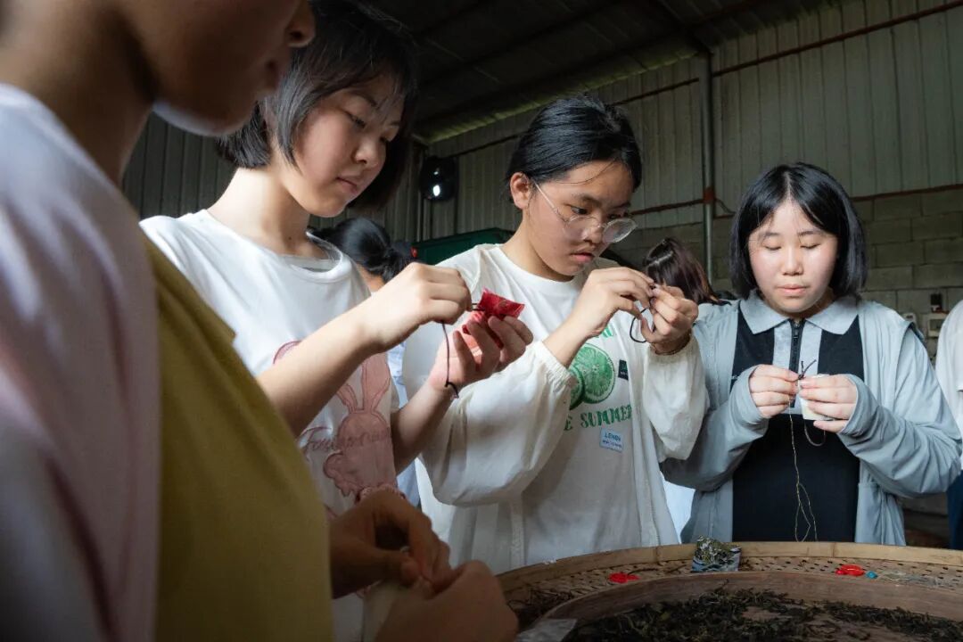 为了让同学们更加深入地体验茶文化,茶农们还教授了他们如何制作茶叶梗香包。同学们挑选了优质的茶叶梗,与干花、干草等香料混合在一起,然后细心地缝制成香包。每一个香包都散发着淡淡的茶香,仿佛将整个茶园的韵味都浓缩其中。他们将香包佩戴在身上,让茶香时刻陪伴着他们,仿佛与茶韵融为一体。