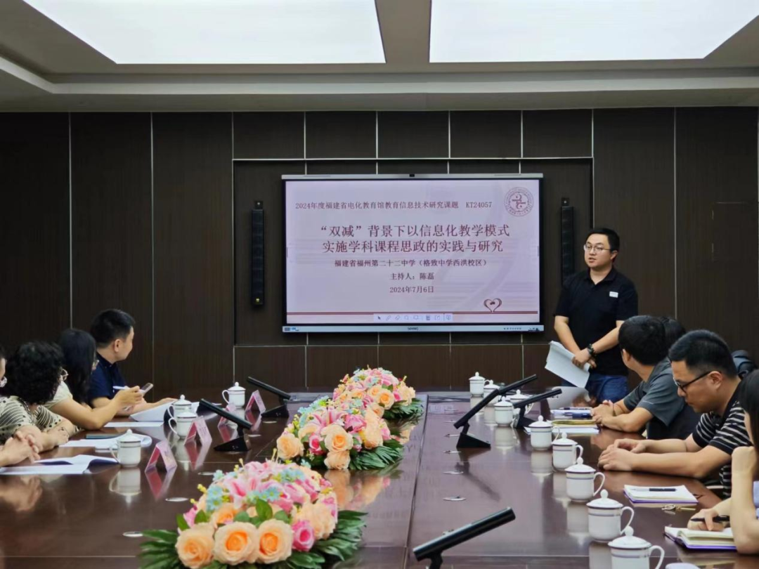 2024年7月6日下午,点点taptap官网(格致中学西洪校区)申报立项的2024年度福建省电化教育馆教育信息技术研究课题《“双减”背景下以信息化教学模式实施学科课程思政的实践与研究》开题论证会在点点taptap官网(格致中学西洪校区)思源楼会议室顺利举行。