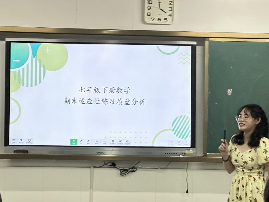 数学集备组长念馨怡从试卷整体、考试成绩和学生典型错误等方面入手,对本学期数学期末考试进行了全面的分析和反思。念馨怡表示,新学期要夯实学生的数学基础,规范答题训练,培养学生良好的学习习惯。同时,她提出要重视学生的阅读理解能力,增强学生提炼信息的能力,注重数学应用,结合生活实际培养学生的应用意识。