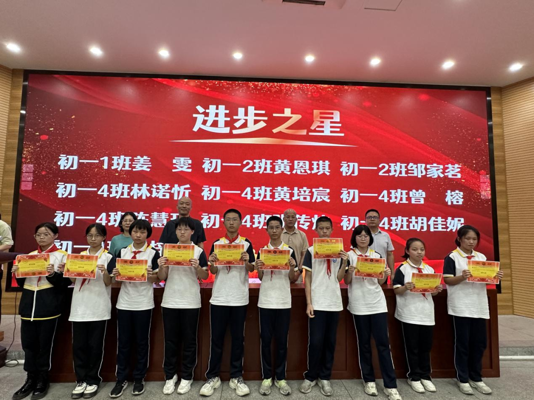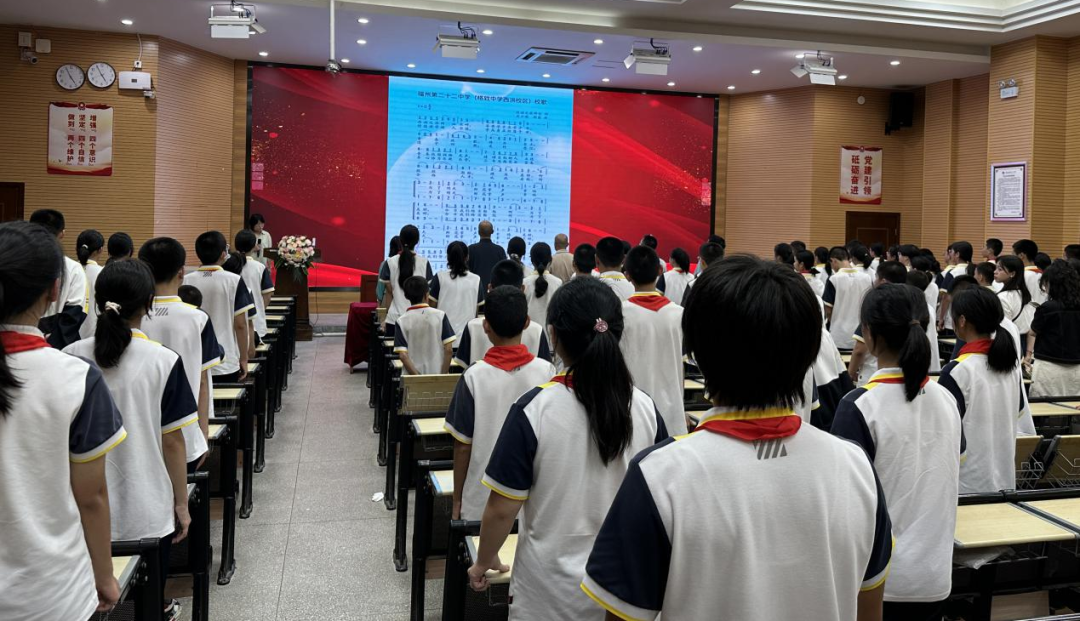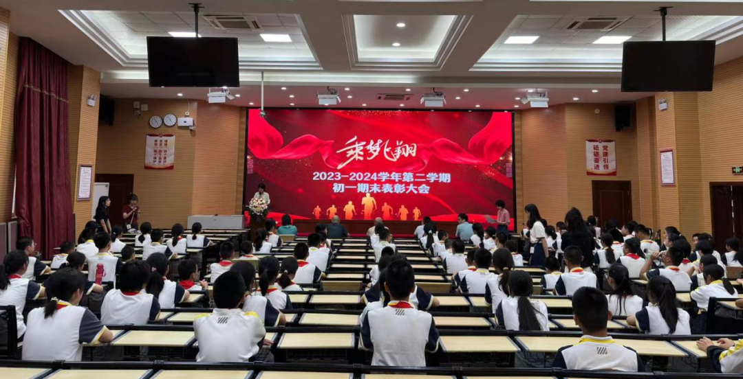 秋风轻拂,丹桂馥郁,伴随着希望与挑战交织的旋律,我们踏入了2024年秋季学期的征程。在这收获与希望同在的季节,福建省福州市第二十二中学(格致中学西洪校区)初二年段在校阶梯教室举行了初二年段第一学期期初的表彰大会,旨在表彰上一学年的丰硕成果,展望本学年的美好希望。陈龙耀校长、董乐副校长、何峰副校长、工会刘芳副主席、教务处黄照主任参加了此次表彰大会,大会由初二年段长苏斌老师主持。