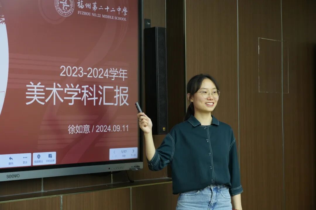 美术组徐如意老师围绕教学教研活动、校园文化建设、以特色课《创意手工》为主线的课外活动、社团活动、指导学生参赛、特长生等方面回顾了上一学年的工作并作出新学年规划。