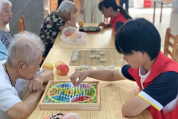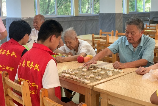 在活动的最后,学生们还陪老人们下起了象棋。棋盘上,老人们精神矍铄,学生们则虚心求教,双方你来我往,棋艺交流得不亦乐乎。这一盘盘棋局,不仅锻炼了老人们的思维,也让学生们学会了尊重和陪伴。通过与老人们的棋艺交流,学生们更加深刻地体会到了陪伴的重要性,也收获了与老人们之间的深厚情谊。这种跨代的交流,让老人们感受到了年轻人的朝气和活力,也让学生们更加珍惜与长辈相处的时光。