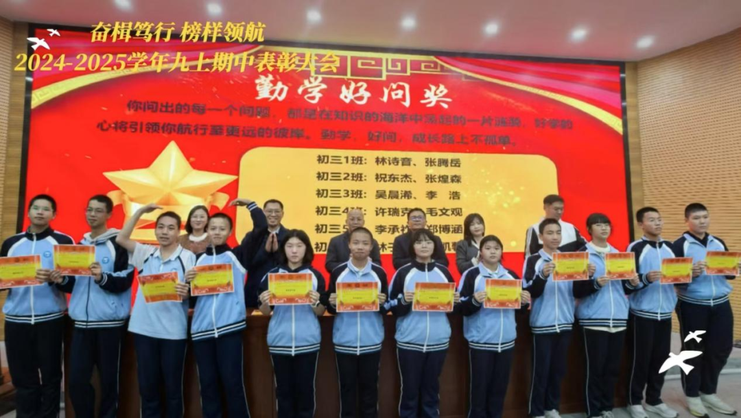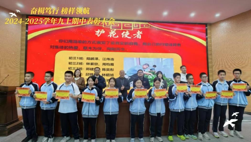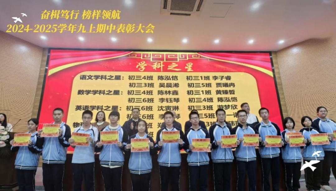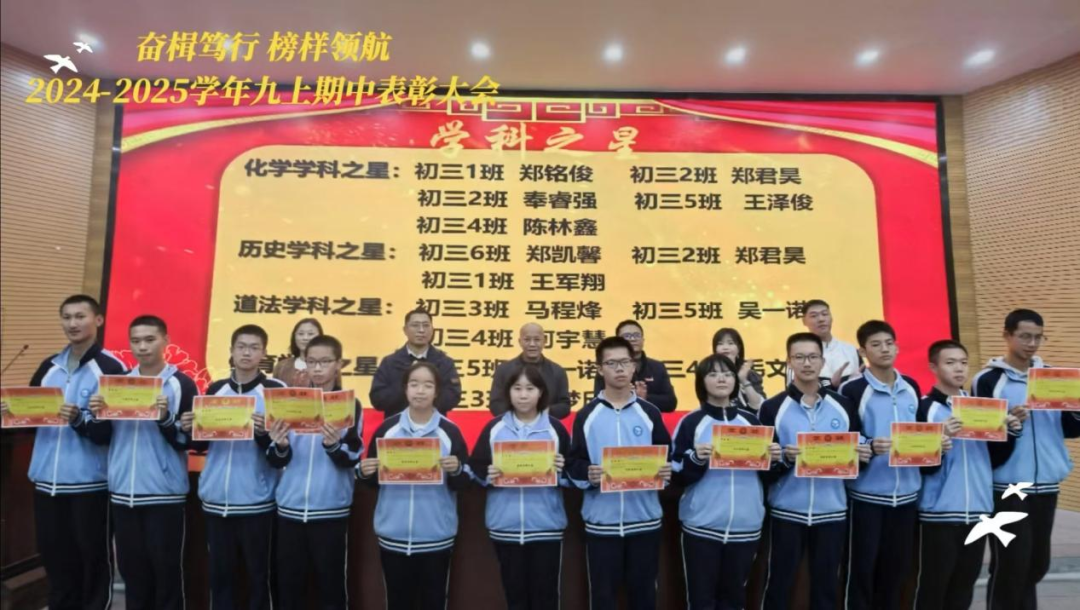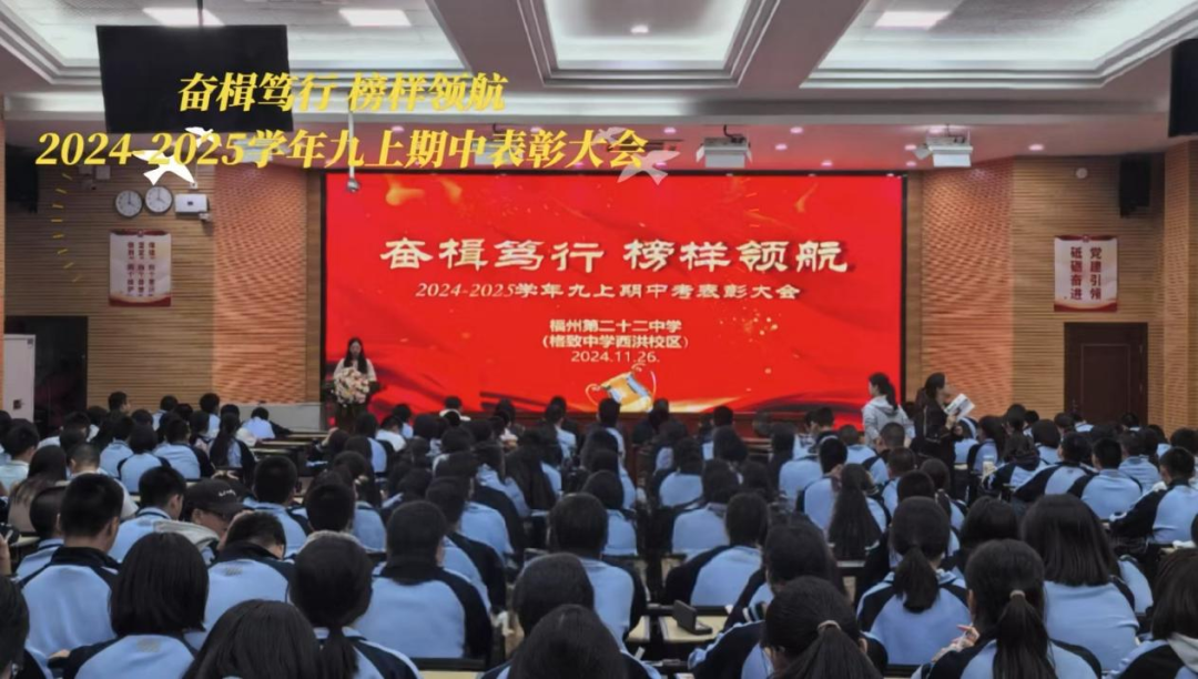 叶落随秋去,冬阳照芸窗。子衿当勤勉,莫负好时光。为鼓励学生进步,鼓舞学生斗志,点点taptap官网(格致中学西洪校区)于2024年11月26日下午举行2024-2025学年九上期中考表彰大会。陈龙耀校长,何峰副校长以及各处室中层干部出席本次活动,活动由初三段长倪婷老师主持。