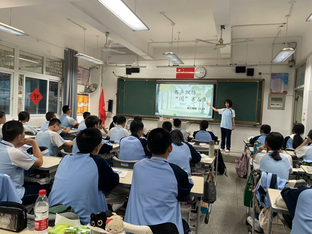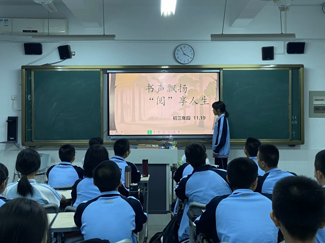 各班也开展了以“书声飘扬,阅享人生”为主题的读书月的班会课,班主任通过名人名言、励志故事、观看视频向学生强调读书的重要性,激发学生阅读兴趣。