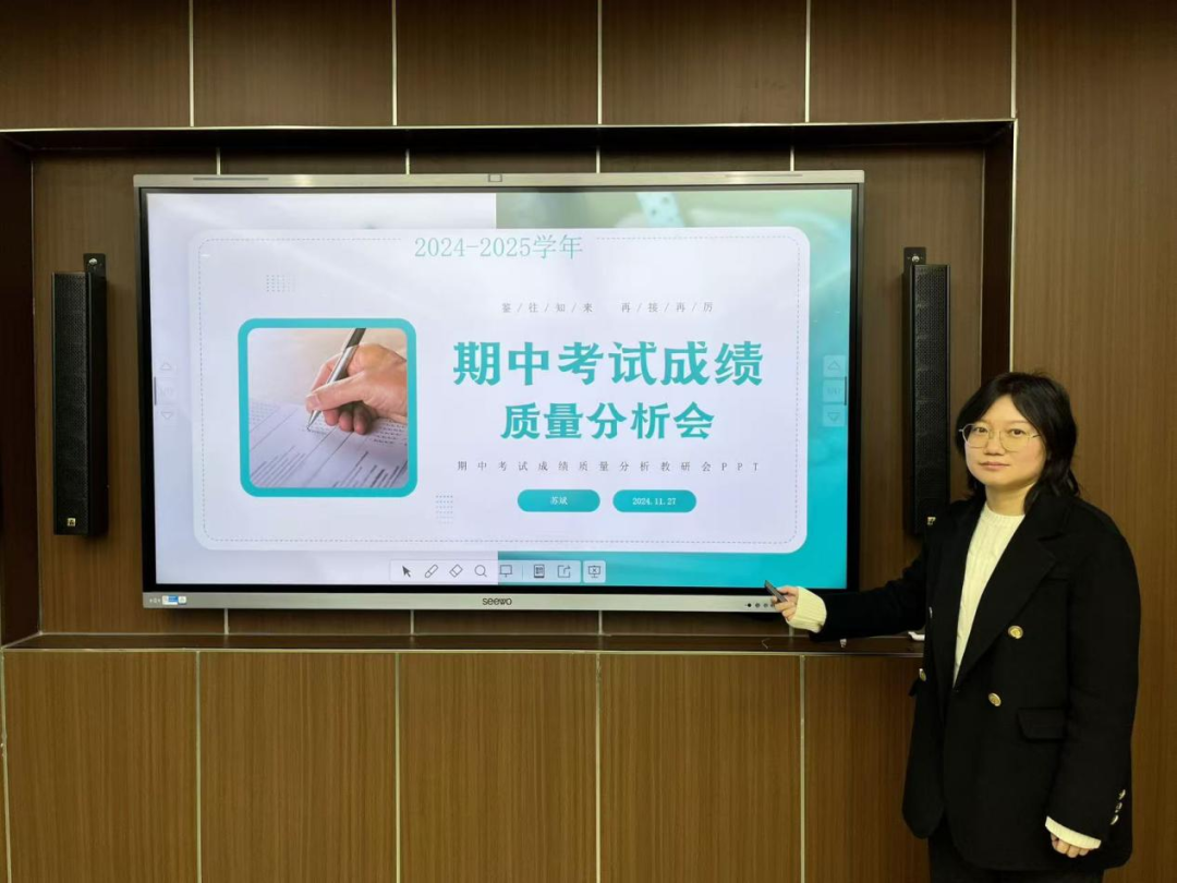 会议伊始,由教务处黄照主任对期中考试考试进行数据分析,找出问题所在,并提出接下来的努力方向,精准施策。随后,苏斌段长介绍了各班本次考试的情况,用数据判断学生的进退情况,分析上个阶段的教学策略是否达到预期效果,提出有针对性的建议供大家沟通研判。
