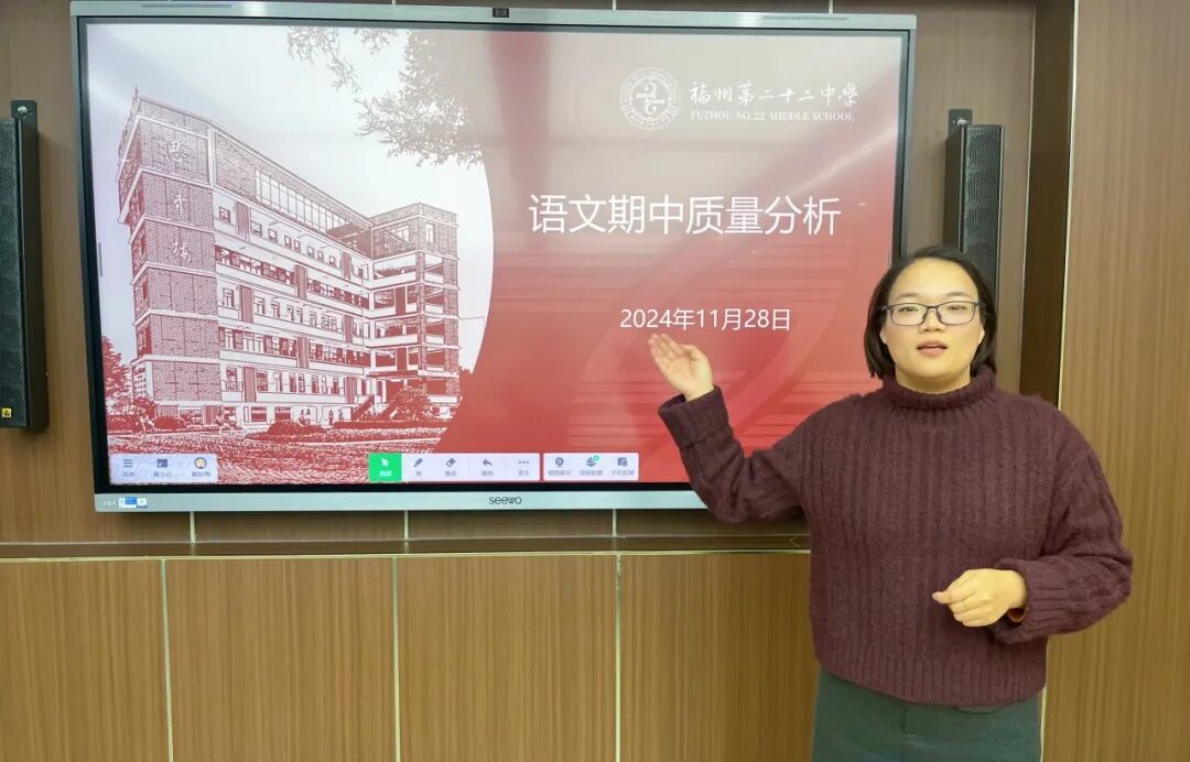 语文组老师戴秋莺老师分析了语文学科的情况,指出部分同学在当前语文学习中存在读题能力差、阅读量少、答题不规范等问题,并提出下一阶段将通过强化基础训练、教授审题技巧、培养阅读习惯等方法,切实做好年级语文的培优、抬底工作,有效提升学生的语文素养。