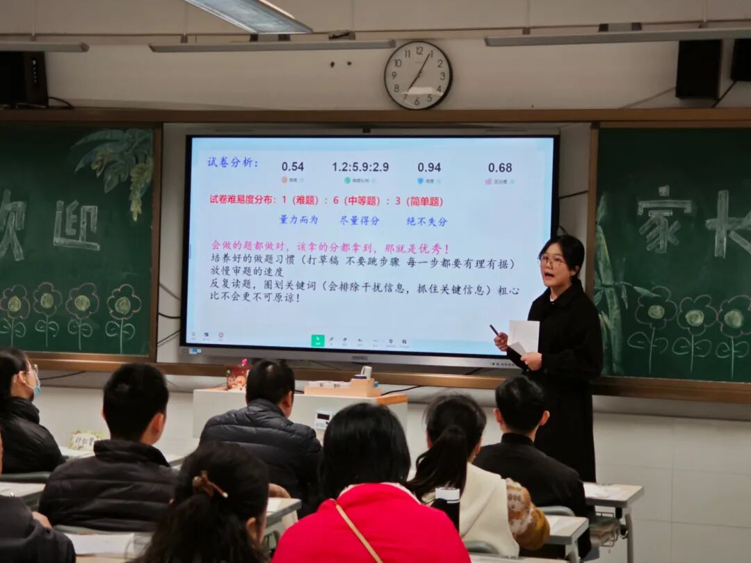 接着,科任老师就结合开学以来的教学、学习情况,针对“家校如何高效配合”的问题与家长们交流,为家长们在家引导、助力孩子学习提出了不少宝贵建议。希望通过家校的共同努力,帮助孩子养成良好的学习和行为习惯等,共同为初三“一检”全力以赴。