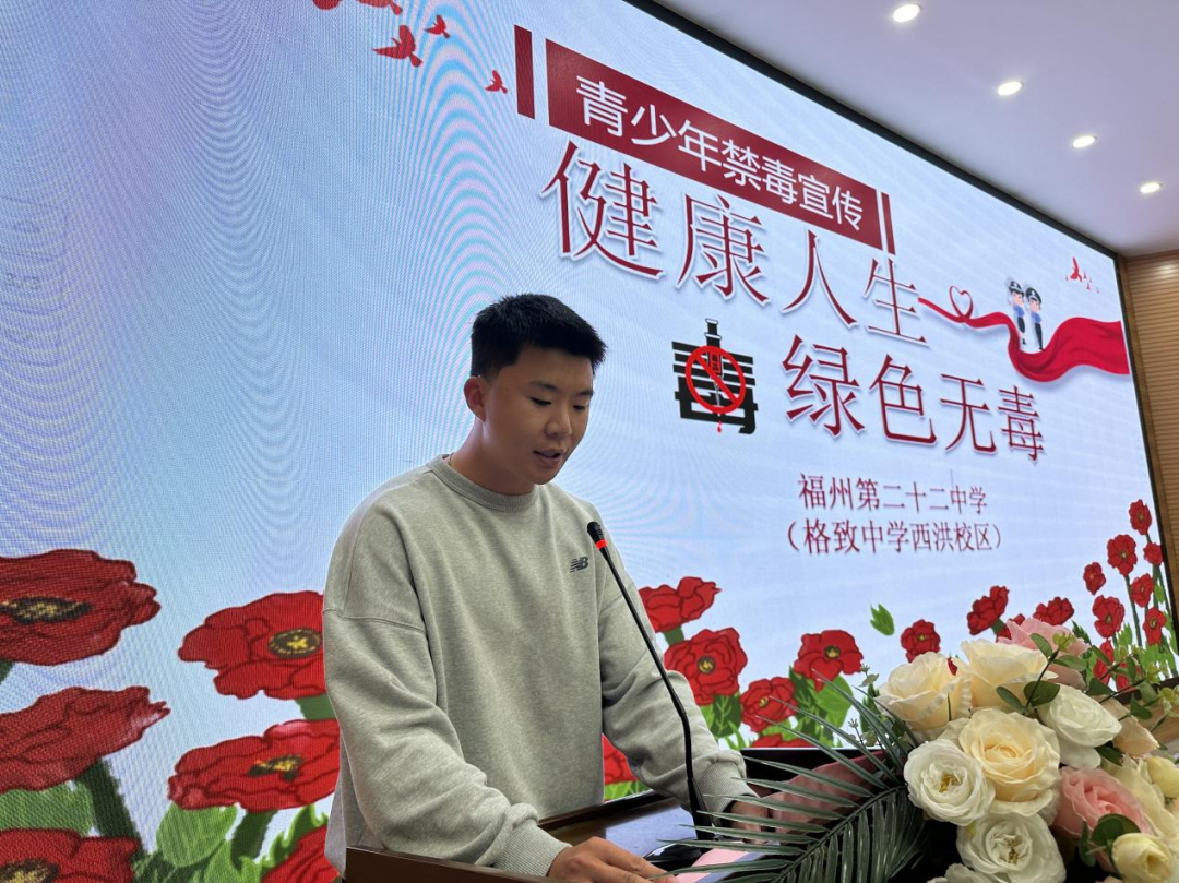 学安办毕致远老师在国旗下讲话中,开展了《健康人生,绿色无毒》的演讲,毕致远老师向全体同学发出倡议:珍爱生命,远离毒品,让我们从今天做起,从自身做起,提高防毒意识,共同营造无毒校园。