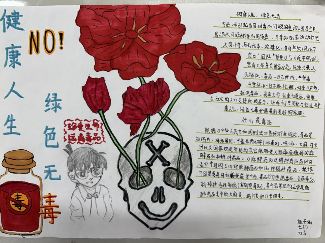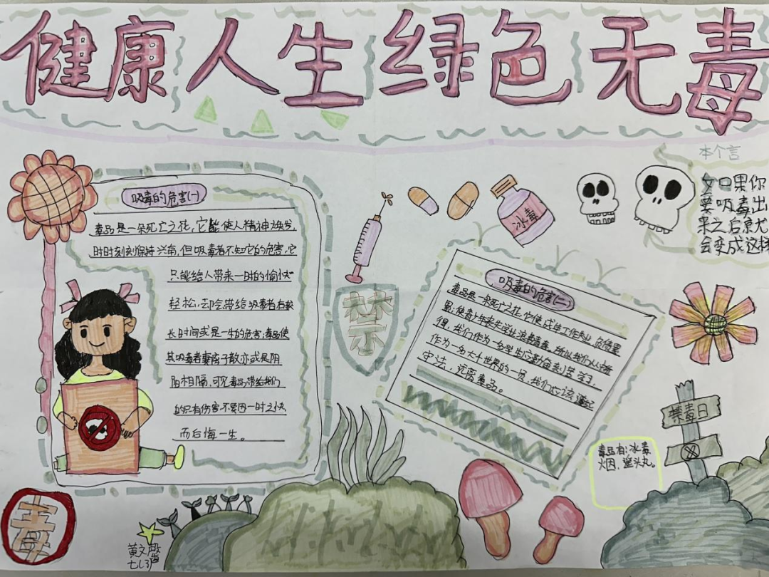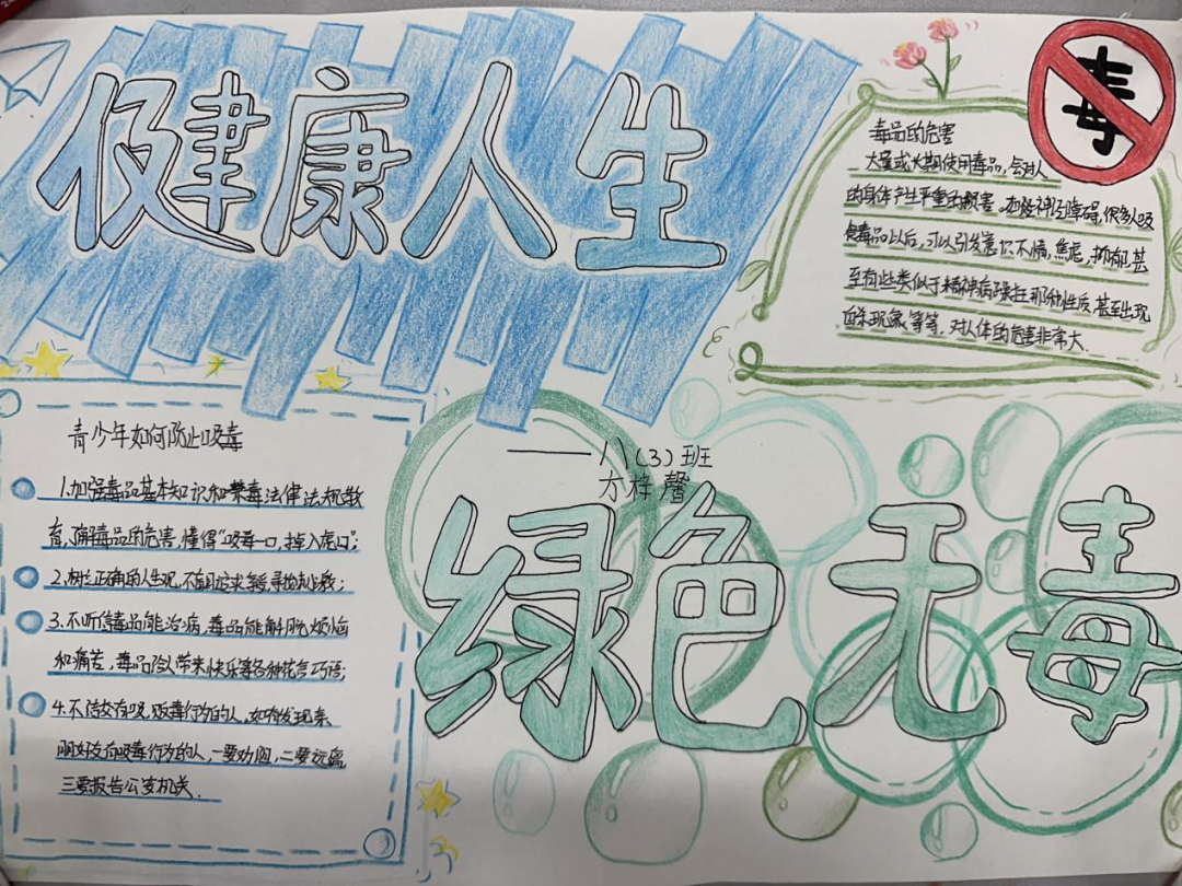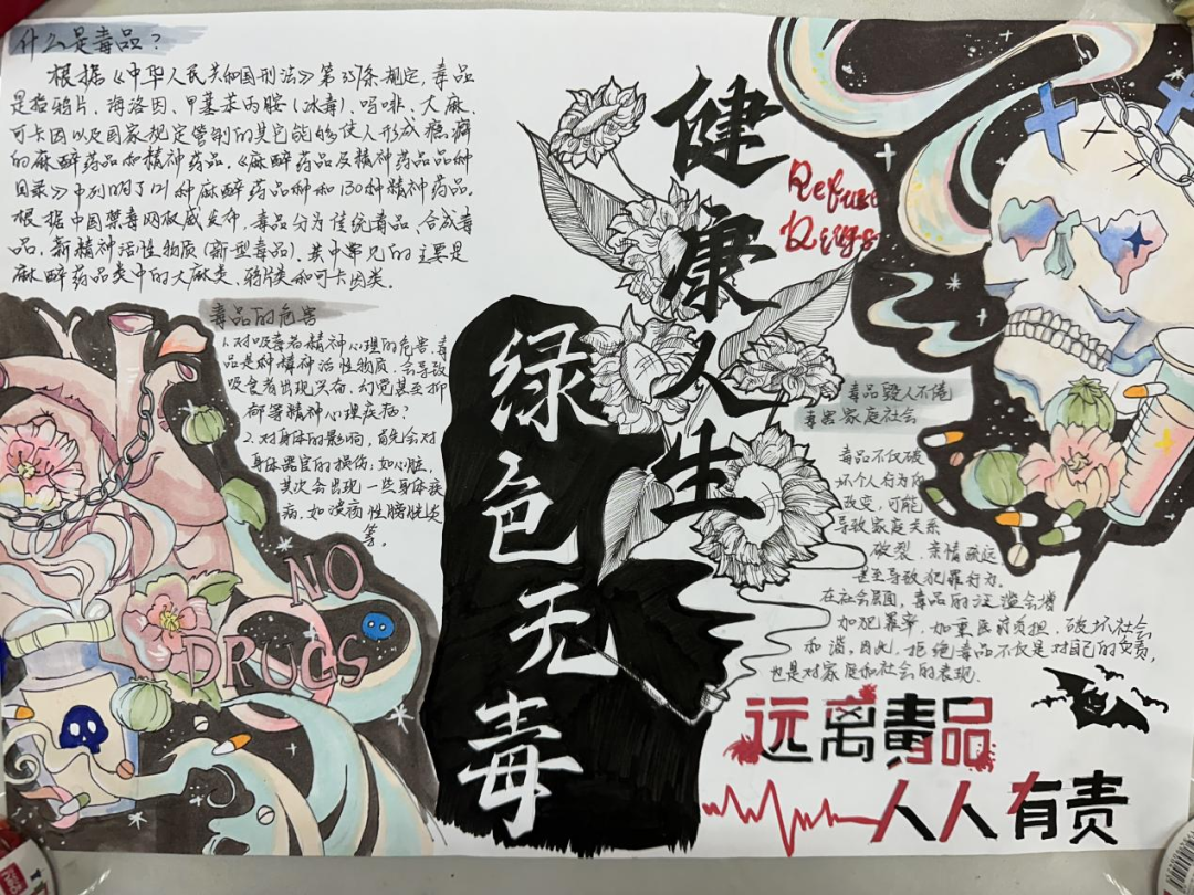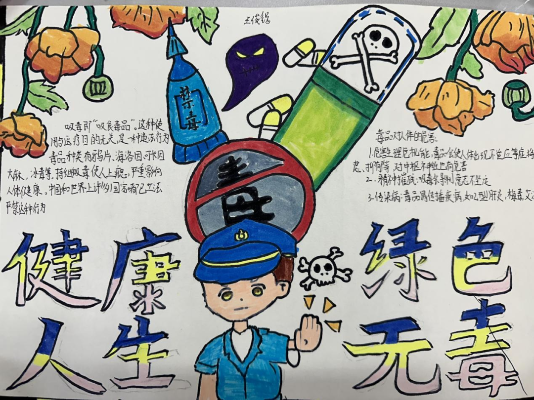 学校开展了禁毒手抄报、书法作品征集活动。同学们积极参与,用手中的画笔表达了对毒品的抵制和对生命的珍爱。一幅幅精美的手抄报和书法作品,展示了同学们禁毒的决心和信念。