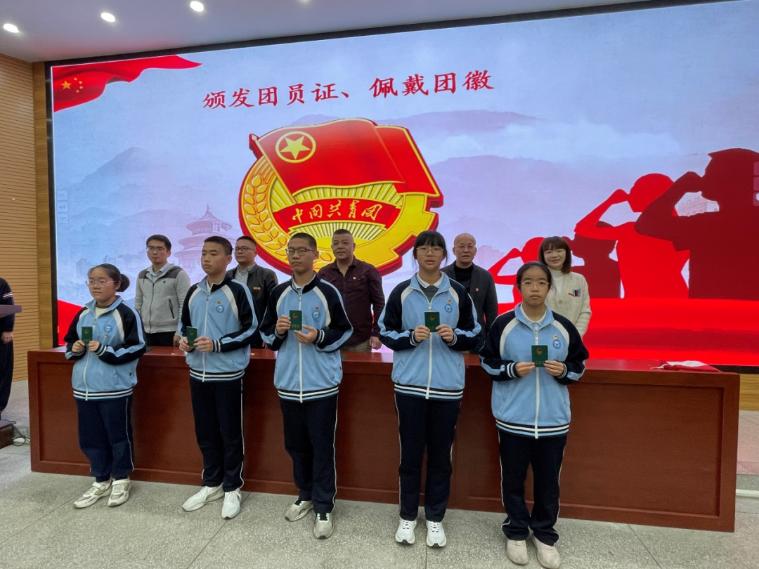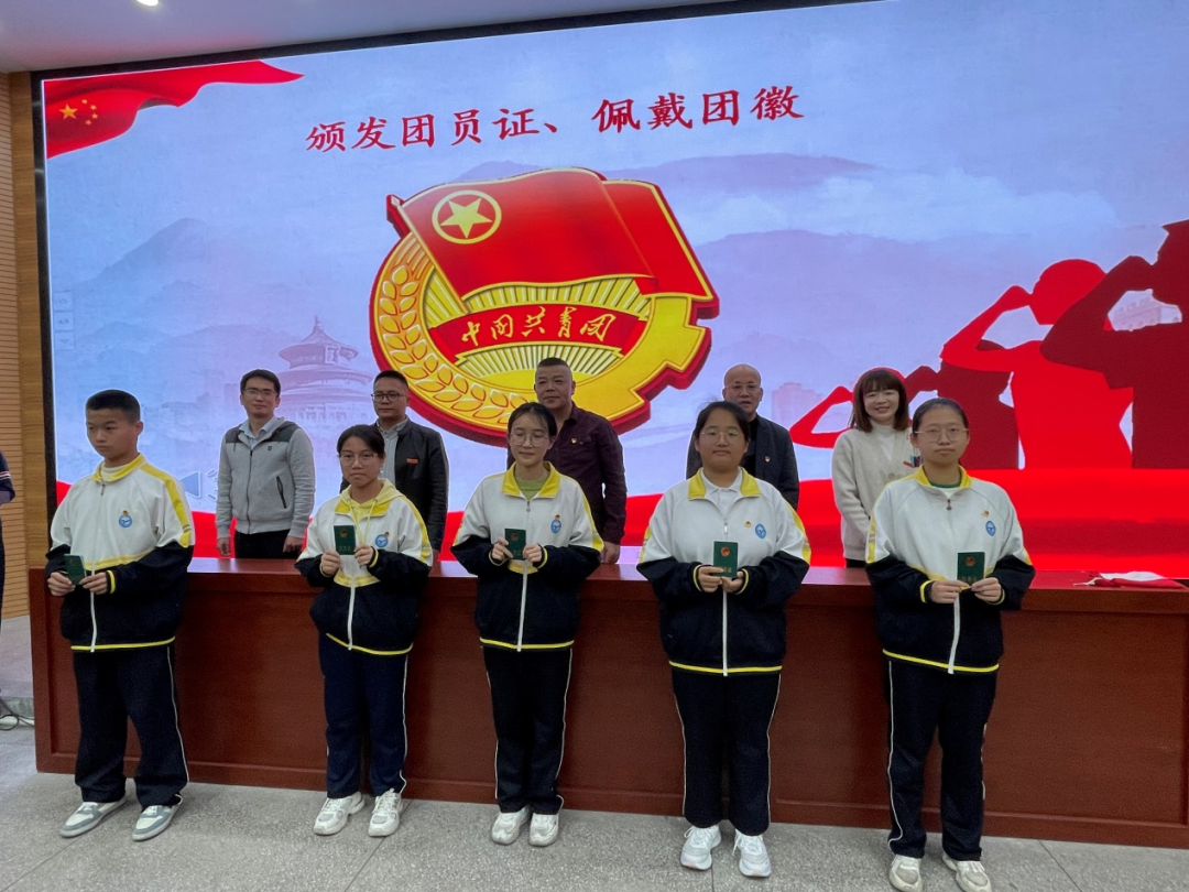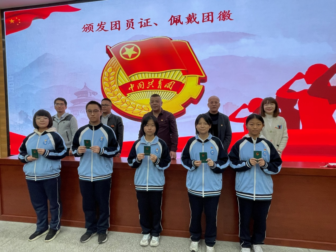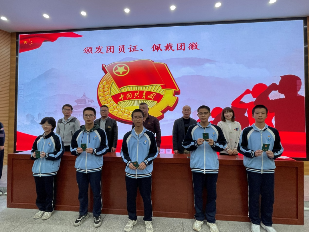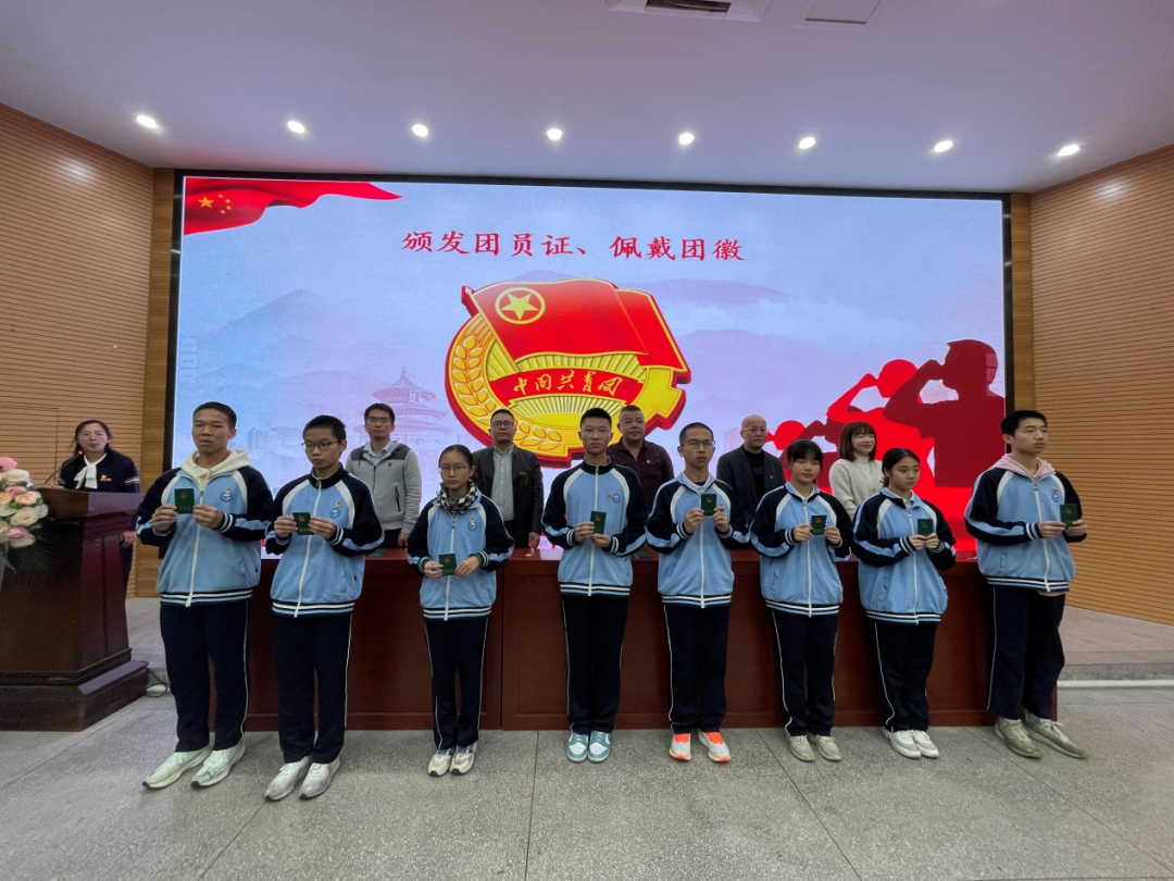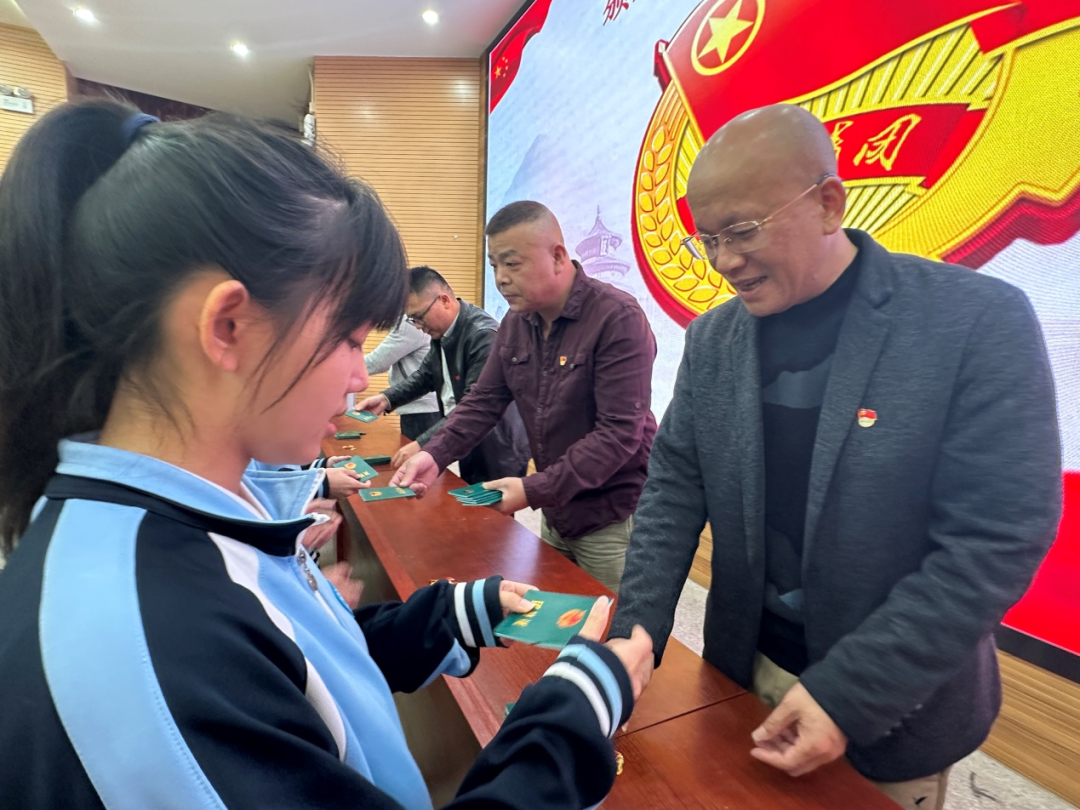领导们为新团员们颁发团员证,标志着他们正式成为共青团的一员,肩负起青春的使命和责任。