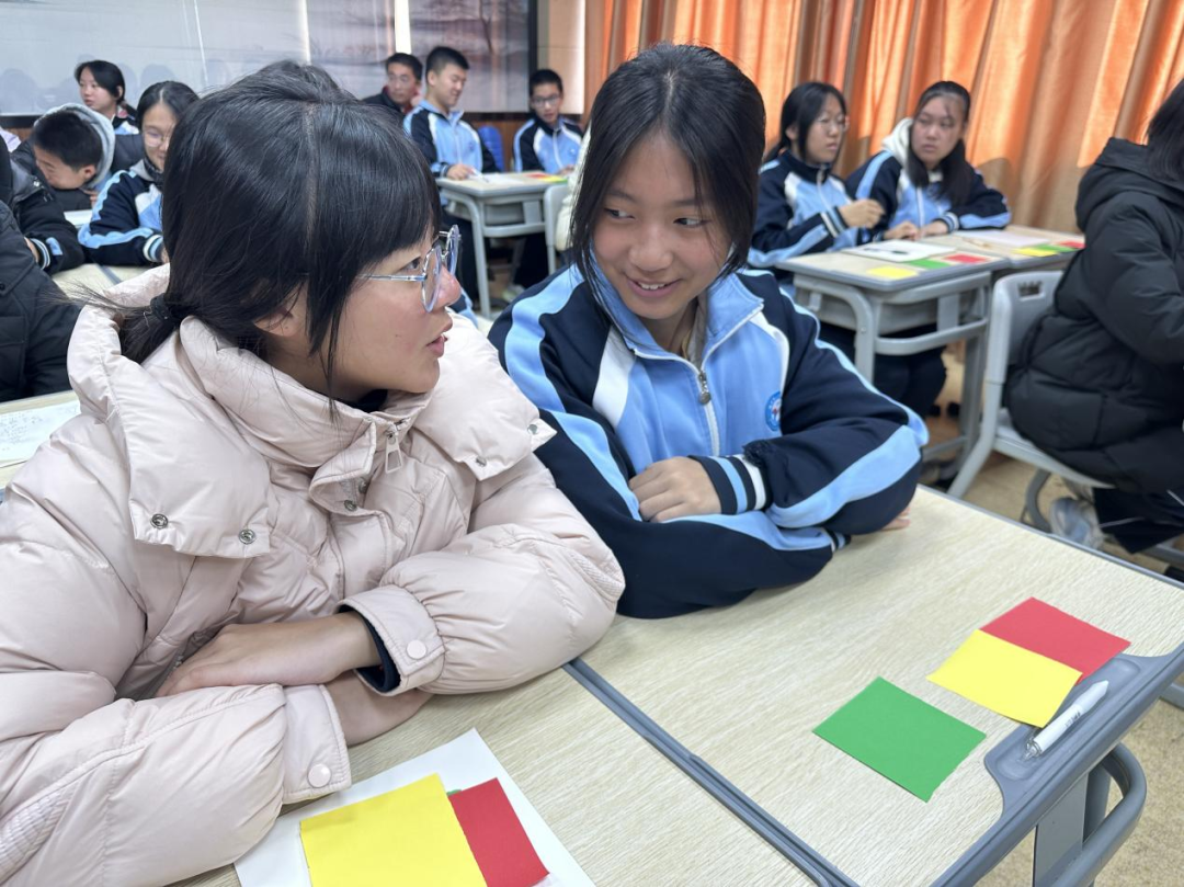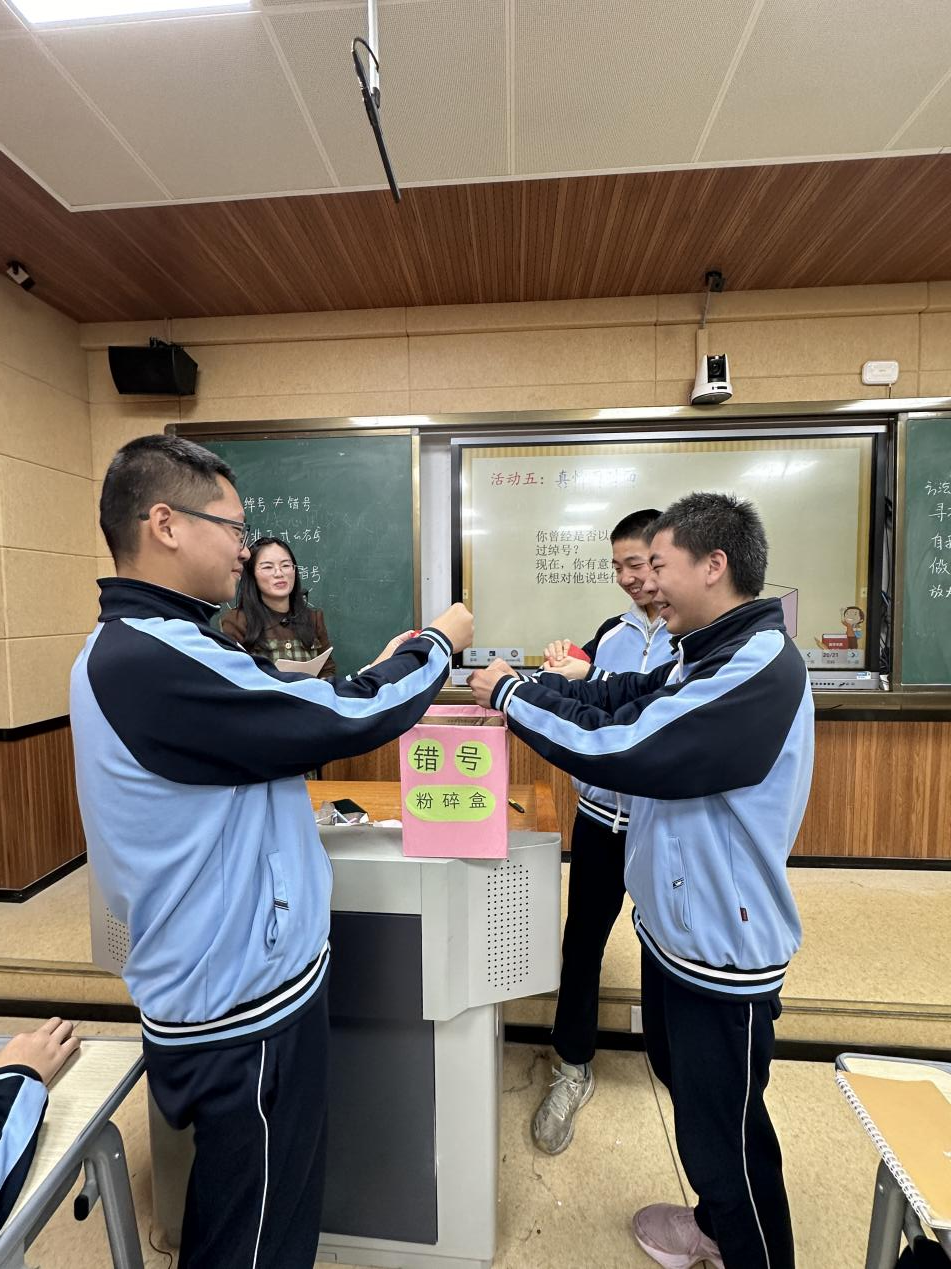 初三(2)班班主任高芳老师以“绰号”≠错号”为主题上了一堂生动精彩的德育公开课。高芳老师通过“说名字,做游戏”、“你的名字”、“绰号猜猜猜”、“绰号面面观”、“ta的求助信”、“解忧小达人”、“真情面对面”这七个环节展开,通过一系列活动让同学们明白绰号不等于错号,无论是不是玩笑,要记住:你的玩笑,我的毒药,出言有尺,玩笑有度。