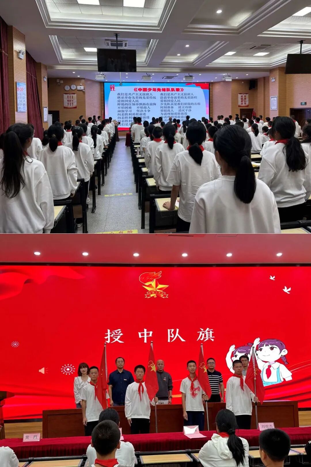 为庆祝中国少年先锋队建队75周年,增强少先队员的光荣感和自豪感,激励广大少先队员听党话,跟党走,争做新时代好队员。我校于2024年10月11日下午隆重举行“红领巾爱祖国 争做新时代好少年”为主题的2024级少先队建队仪式。我校领导、中层干部及中队辅导员出席了本次活动。本次建队仪式由校少先队大队辅导员倪婷老师主持。
